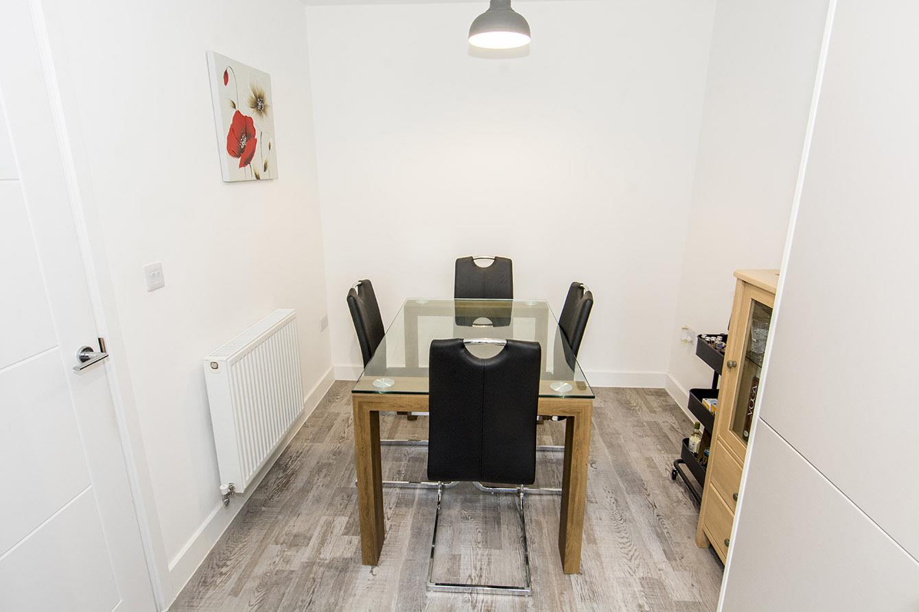 Kitchen/Diner - 2.41m x 4.85m (7'11" x 15'11") - With a window to the front aspect the kitchen is fitted with modern cabinets and complimenting surfaces. Stainless steel bowl and a half sink with mixer taps. There is a built under oven, a gas hob and extractor fan. The kitchen allows space for a washing machine and a fridge-freezer. Luxury vinyl flooring and a radiator.