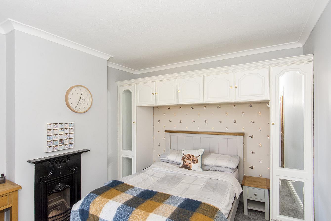 Bedroom Two - 3.48m x 4.06m (11'5" x 13'4" ) - A double bedroom with a feature cast iron fireplace, useful over stairs cupboard and a window to the front aspect.