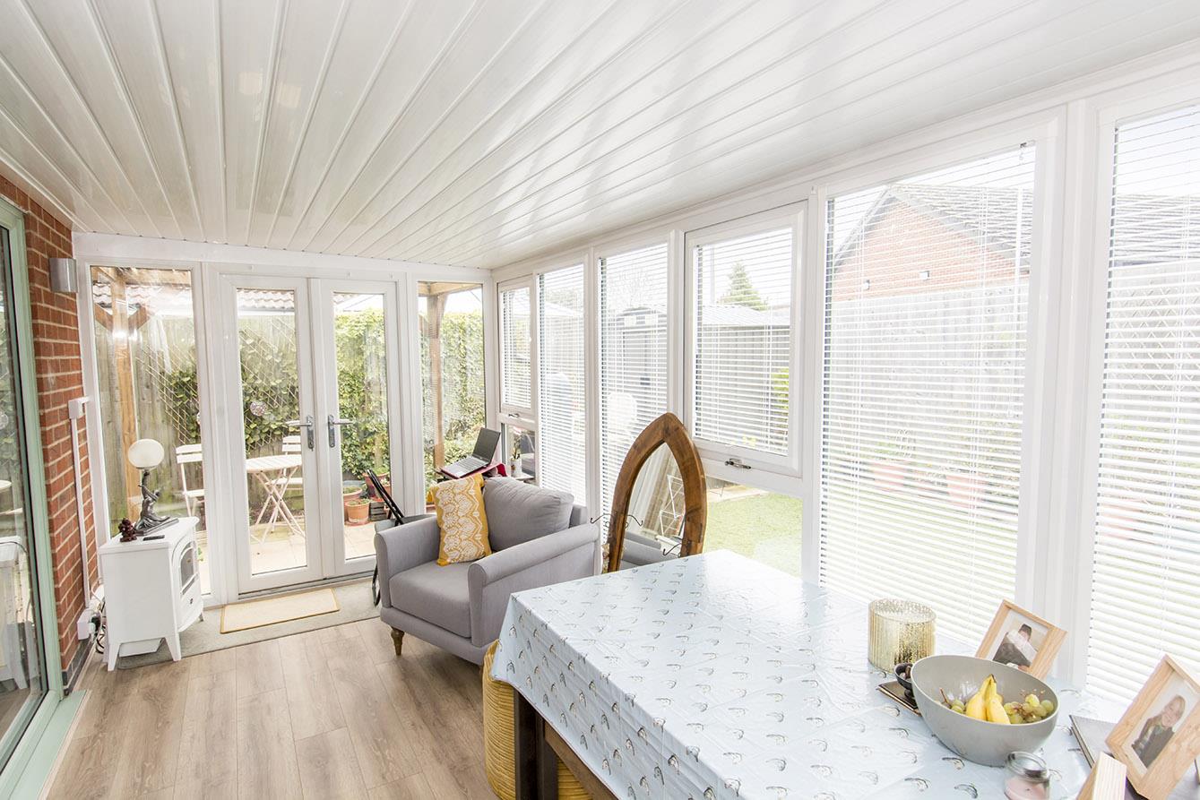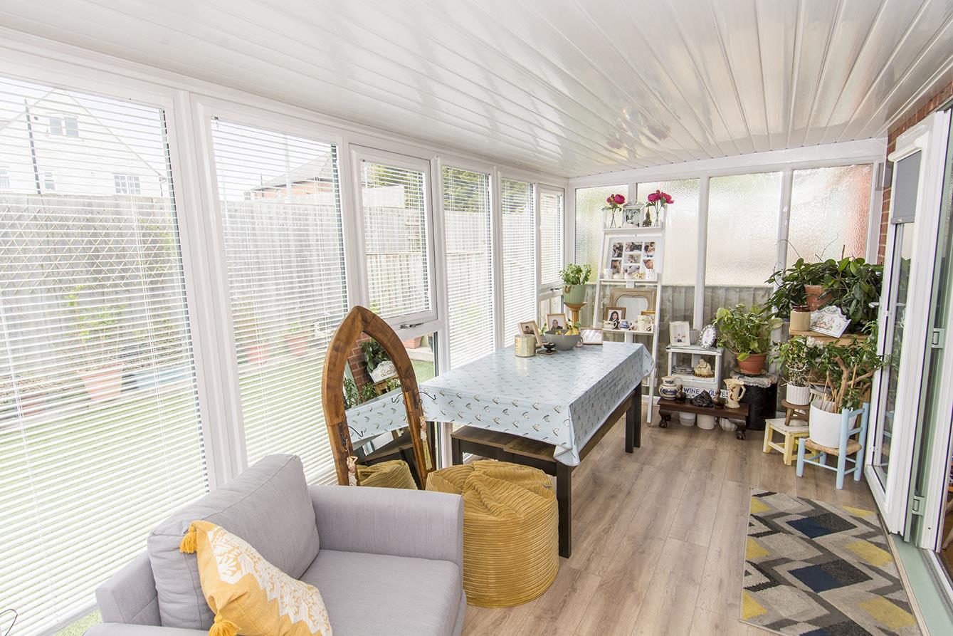 Garden Room - 2.13m x 5.00m (7'0" x 16'5") - This sunny room has a UPVC insulated roof. This lovely addition to the property is currently being used as a dining room. High quality luxury vinyl flooring throughout. Ample electric sockets. A door gives access to the garden.