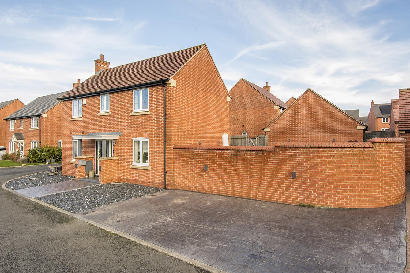 Situated in the charming area of Primrose Close, Lutterworth, this splendid four-bedroom detached family home offers a perfect blend of comfort and modern living. Set on a generous corner plot, the property boasts stunning field views that enhance its appeal. Upon entering, you are greeted by a welcoming entrance hall that leads to a spacious lounge, ideal for relaxation and family gatherings. For those who work from home, a dedicated home office provides a quiet space to focus. The heart of the home is undoubtedly the fabulous modern dining kitchen, which features French doors that open seamlessly into the garden, creating an inviting atmosphere for entertaining or enjoying family meals. A convenient utility room adds to the practicality of this well-designed space. The master bedroom is a true retreat, complete with an en-suite bathroom for added privacy. Three further double bedrooms ensure ample space for family or guests, while the family bathroom, equipped with a separate shower, caters to all your needs. The walled garden has been thoughtfully paved for easy maintenance, allowing you to enjoy outdoor living without the hassle of extensive upkeep. Additionally, the property includes a garage and parking for up to five vehicles, with extra parking created at the front, making it perfect for families or those who entertain frequently. This delightful home in Lutterworth is not just a property; it is a lifestyle choice, offering comfort, convenience, and beautiful surroundings. Don't miss the opportunity to make it your own. No upward chain.