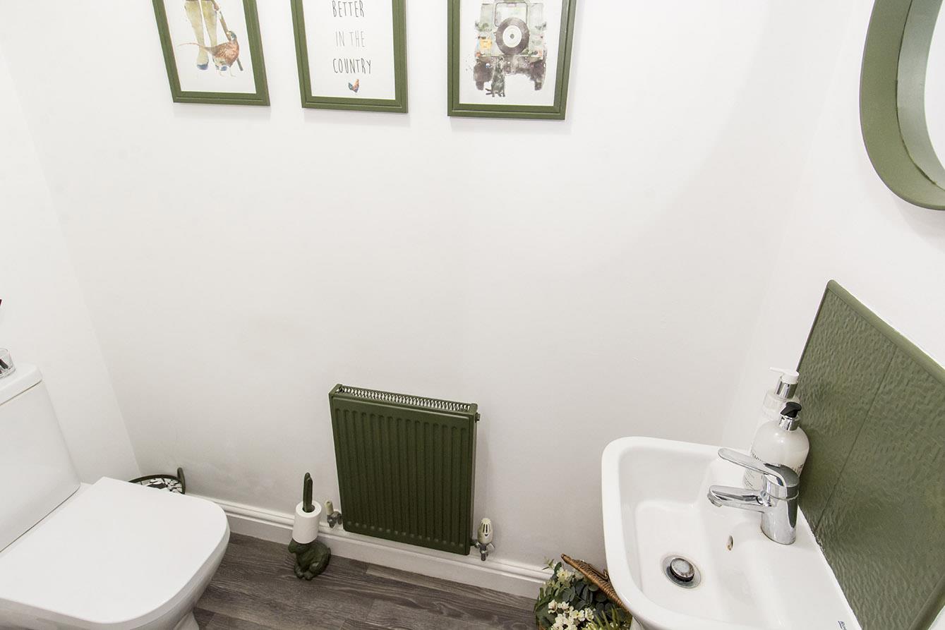 Cloakroom - Fitted with a low level WC and wash hand basin. Karndean flooring. Radiator. Opaque glazed window to the front aspect.