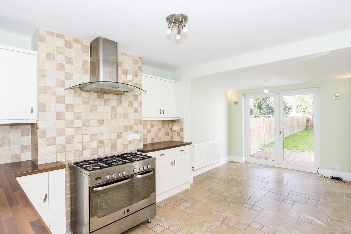 Extended Kitchen/Diner - 5.89m max x 2.49m min x 5.03m max x 2.77m min (19 - UPVC double-glazed window to side. UPVC double-glazed French doors to rear. Range of wall and floor mounted kitchen units with worktops over. 'Newworld' range style cooker. Integrated dishwasher. Integrated fridge/freezer. Kitchen sink. Tiled splash backs. Tiled flooring. Radiator.