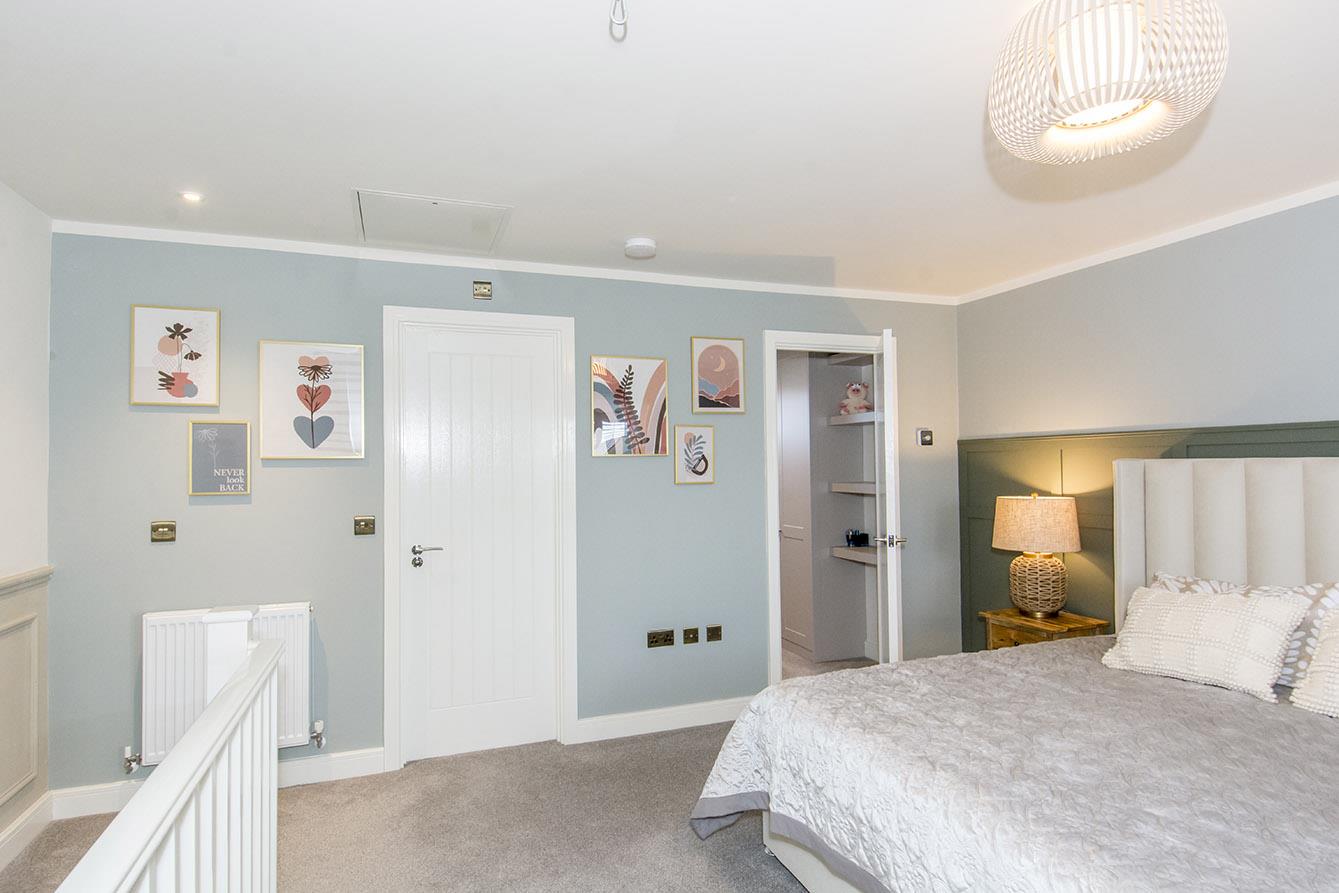 Master Dressing Room - 2.36m max x 2.01m (7'9" max x 6'7") - Double-glazed skylight to rear. F Range of fitted wardrobes and shelving. Door to eaves storage. Radiator.