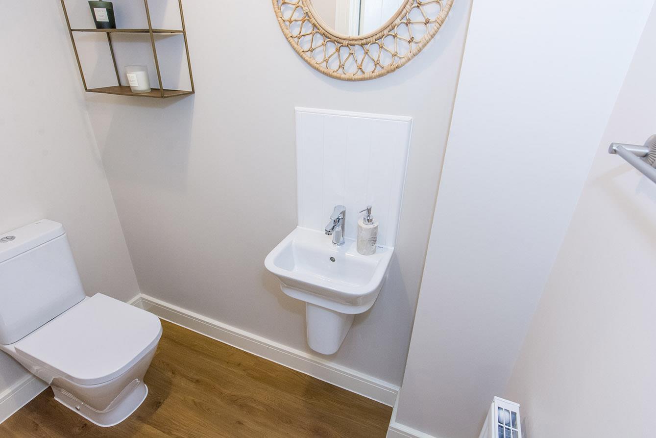 Ground Floor W/C - W/C. Wash hand basin. Extractor fan. LVT flooring. Radiator.