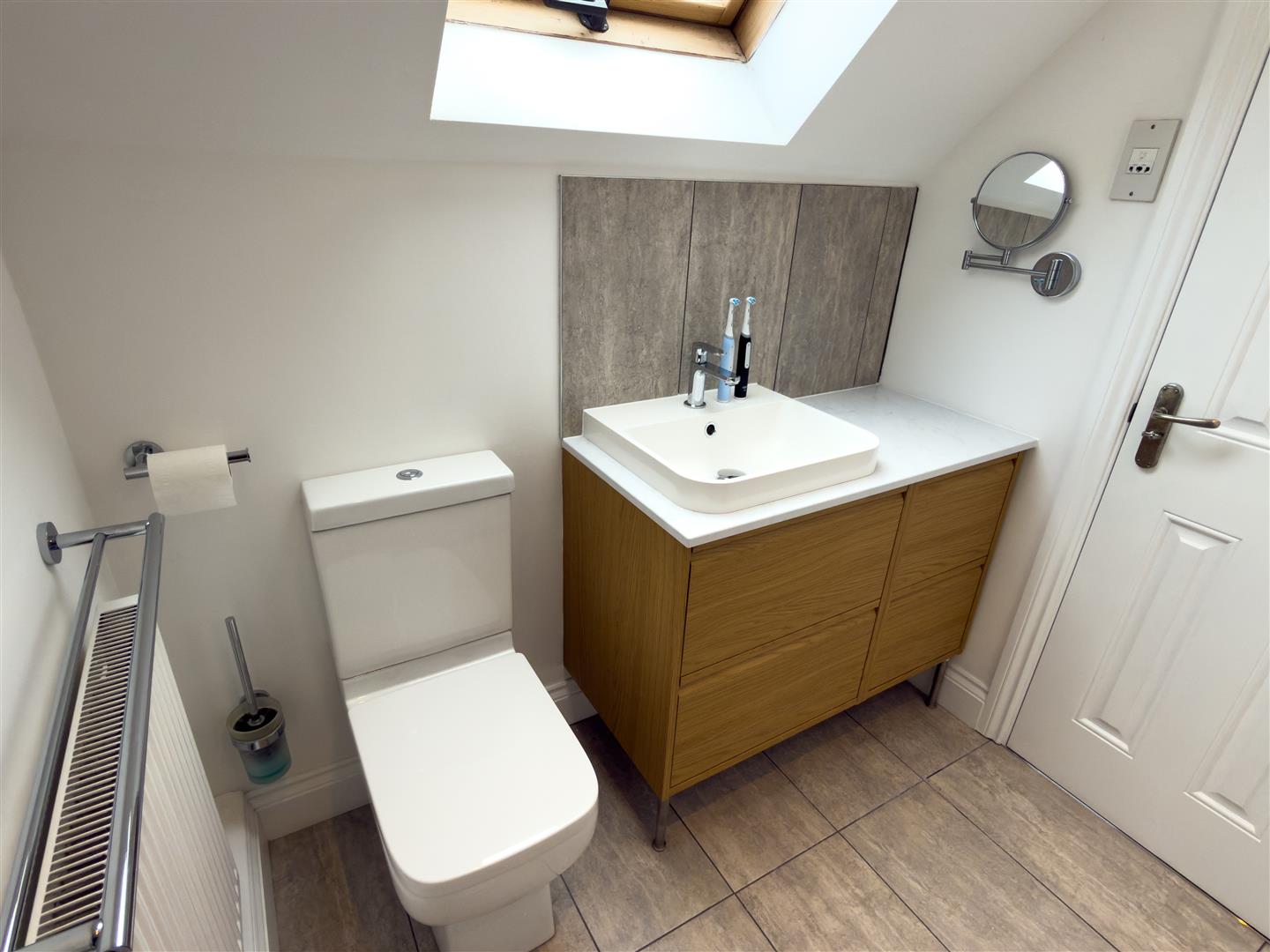 Ground Floor Wc - Opaque UPVC double-glazed window to front. WC. Wash hand basin over storage unit. Tiled splash backs. Tiled flooring. Radiator.