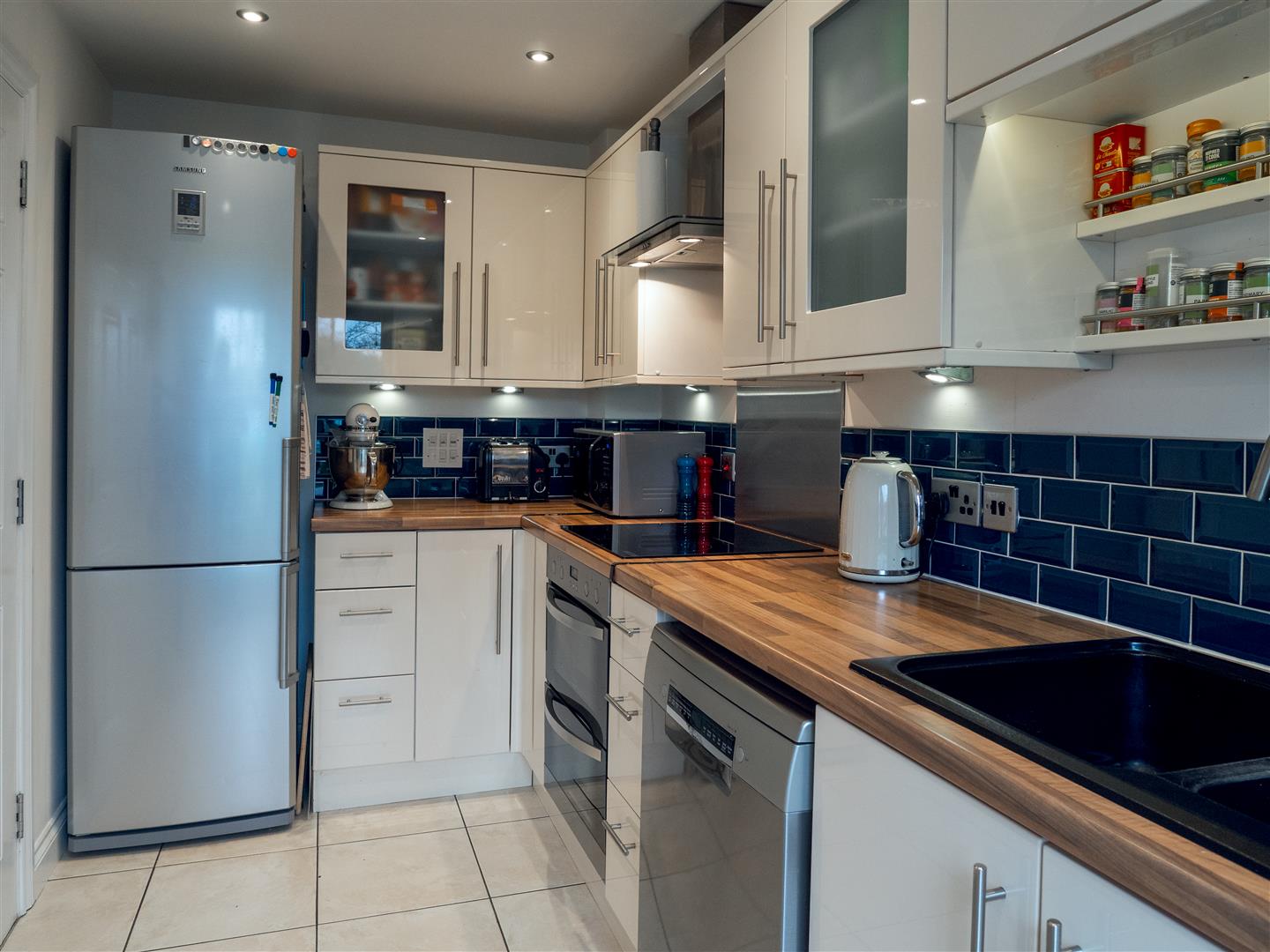 Kitchen - 3.91m x 1.88m (12'10" x 6'2") - UPVC double-glazed sash style window with views of the green. Fitted range of wall and floor mounted units with roll edge work tops. One and a half bowl sink. Electric double oven. Induction hob with extractor hood over. Space for fridge/freezer. Space and plumbing for dishwasher. Tiled splash backs. Spotlights to ceiling. Tiled flooring. Radiator.