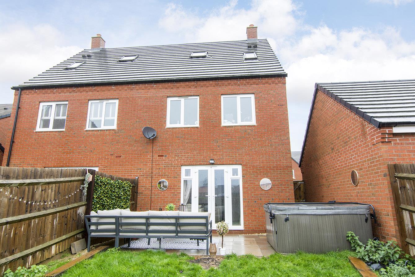 An attractive Taylor Wimpey built three bedroom, three storey semi detached property, located in the well regarded Wellington Place development. Wellington Place enjoys a position close to Market Harborough's fantastic canal towpath with its own country park areas, Sainsbury's Local and primary school. It also provides easy access into Market Harborough's town centre with its vast range of further amenities. The property itself is well presented and spacious and briefly comprises entrance hallway, breakfast kitchen, ground floor WC and lounge/diner. To the first floor there are two double bedrooms, bathroom and stairwell and to the second floor, there's a large master bedroom with built in wardrobes and en-suite. Outside, there is a driveway for two cars in front of the property and a south-west facing rear garden.