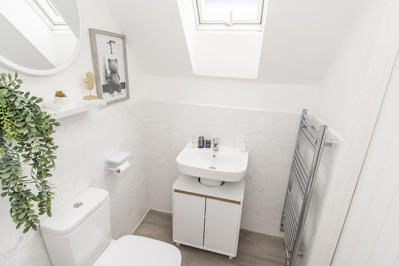 Master En-Suite - 2.21m x 1.37m (7'3 x 4'6") - Double-glazed sky light to rear. WC. Wash hand basin. Shower cubicle. Tiled splashbacks. Heated towel rail.