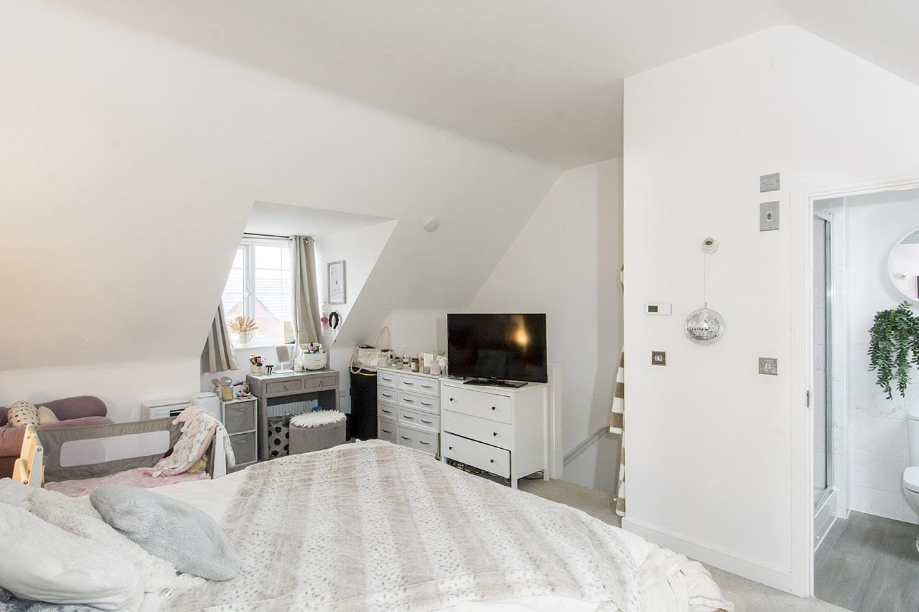 Master Bedroom - 5.08m x 4.75m max into stair recess (16'8" x 15'7" - UPVC dormer window to front. Double-glazed sky light to rear. Built in wardrobes. Radiator.
