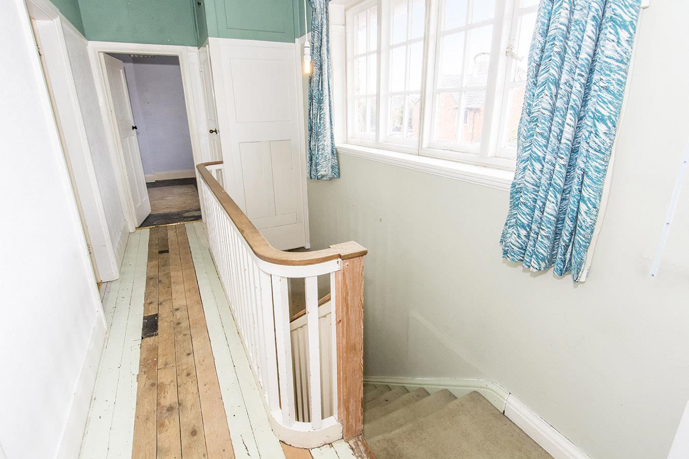 Landing - Two loft hatches. Secondary-glazed window to front. Wall mounted gas fire Worcester central heating boiler. Airing cupboard housing hot water tank. Built-in storage cupboard.