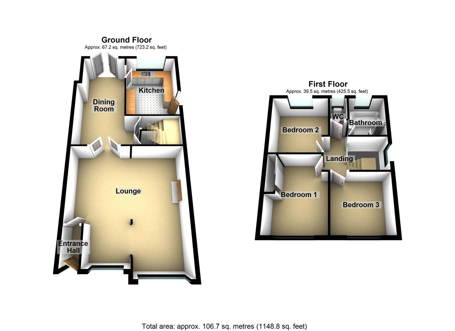 Accommodation briefly comprises; entrance hall, lounge, dining room, kitchen, landing, three bedrooms, bathroom and w/c. Outside the property has front and rear gardens with a driveway directly in front of the property and the single garage in block opposite.