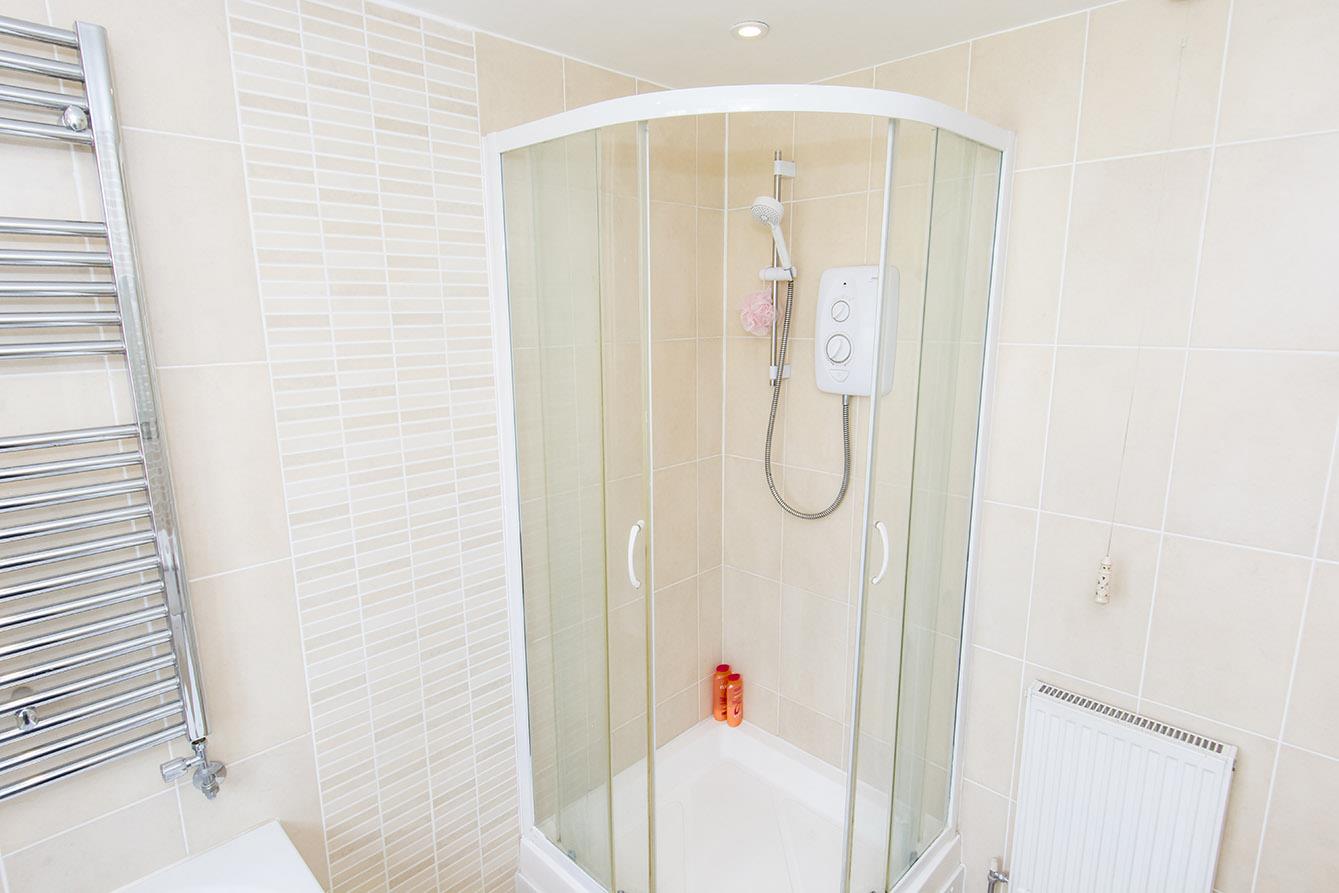 Bathroom - Three piece suite comprising shower cubicle, panelled bath and wash hand basin. Heated towel rail. Tiled splash backs. Double-glazed window to rear.