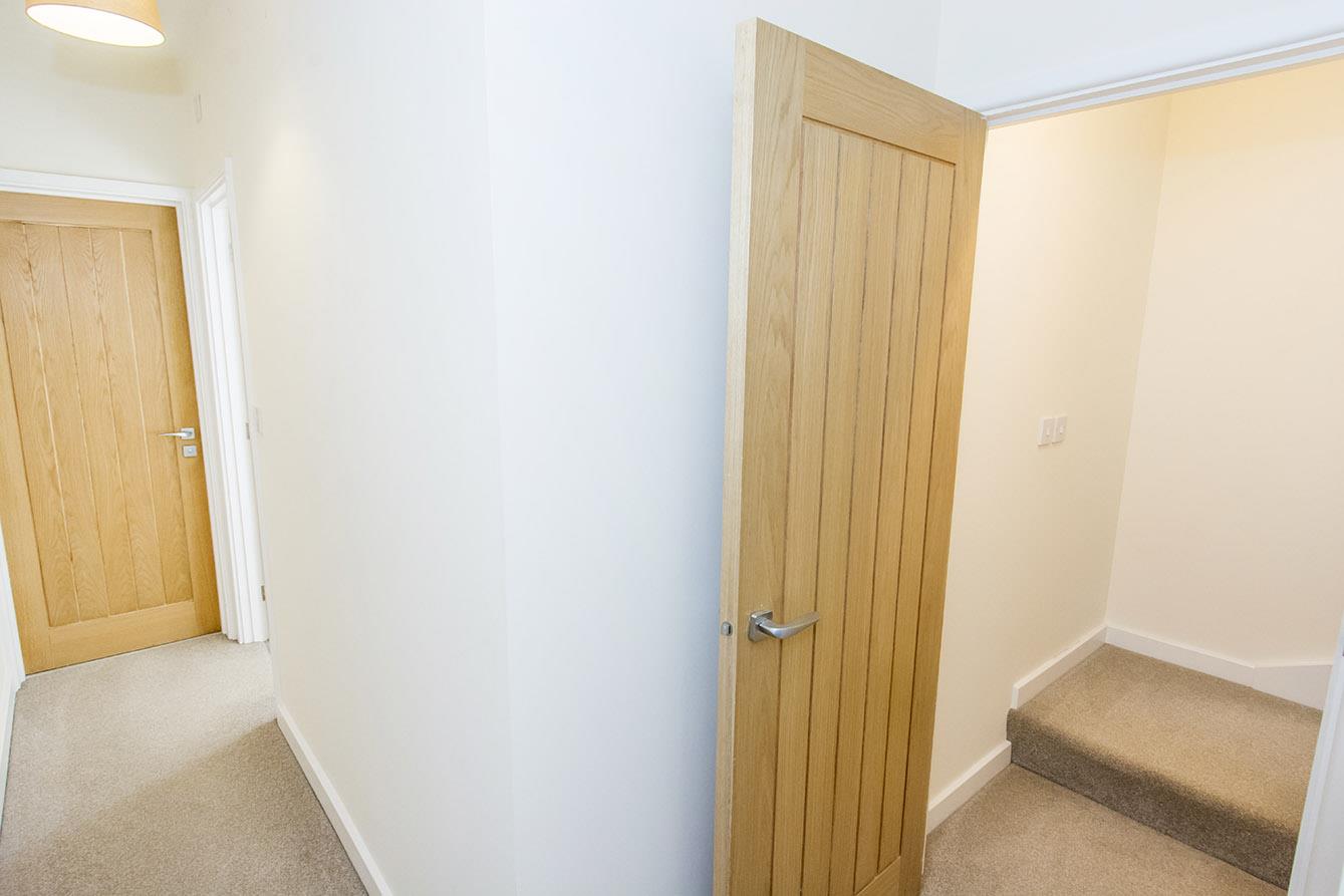Landing - Radiator. Stairs rising to the second floor. Doors to rooms.