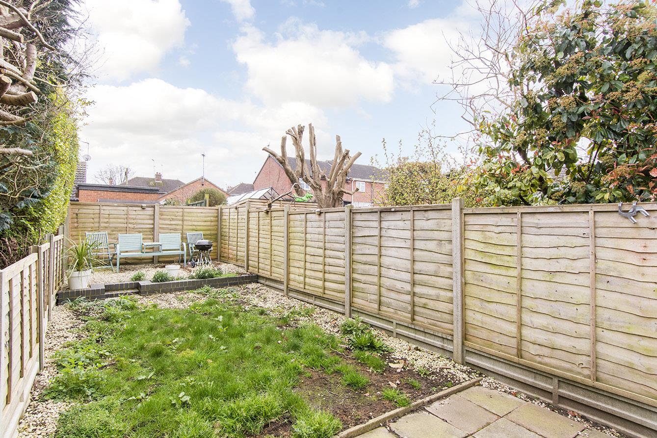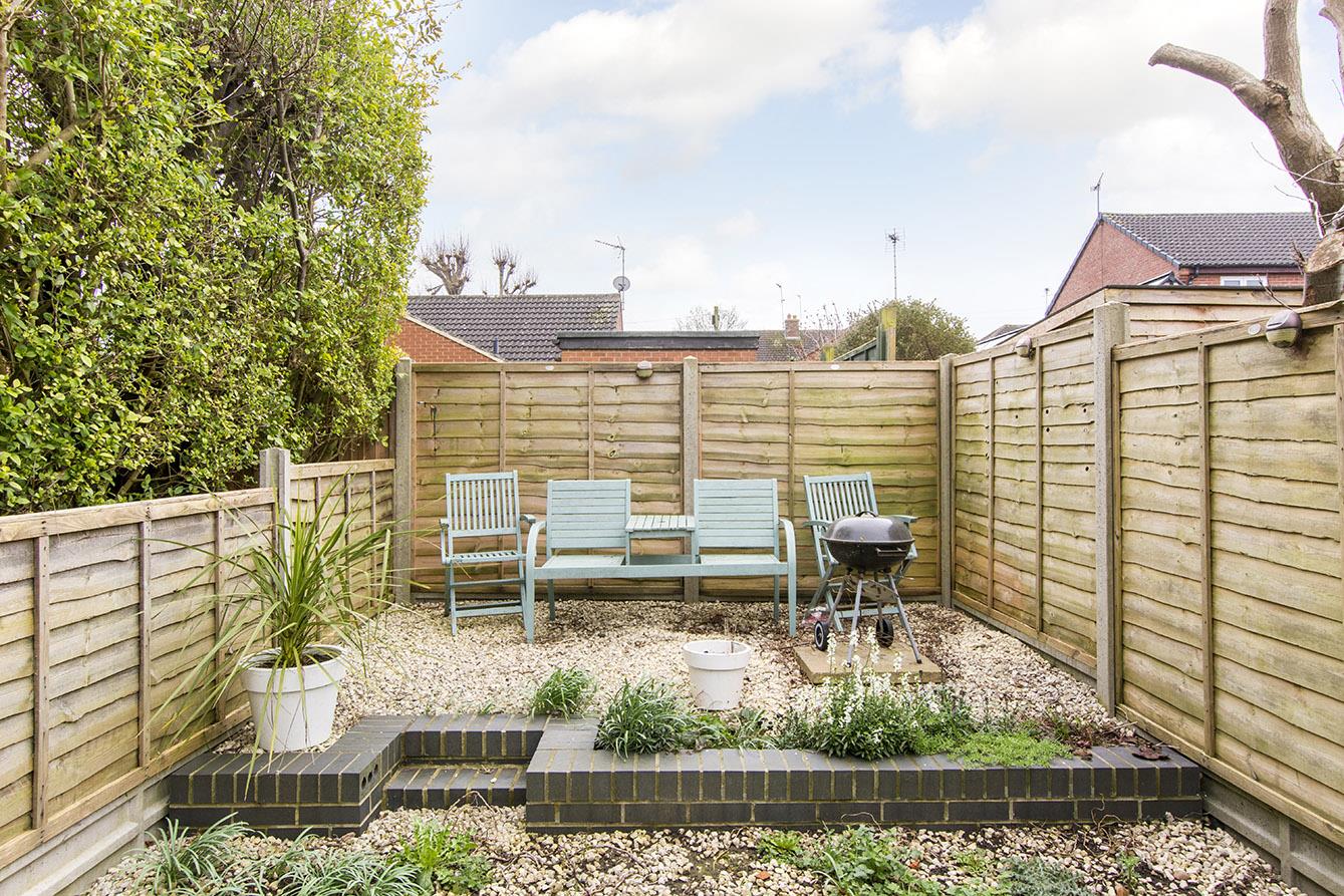 Rear Garden - A good sized, south-facing, private garden with steps leading up to paved patio and lawn with gravel borders and a further gravel seating area to the rear boundary.