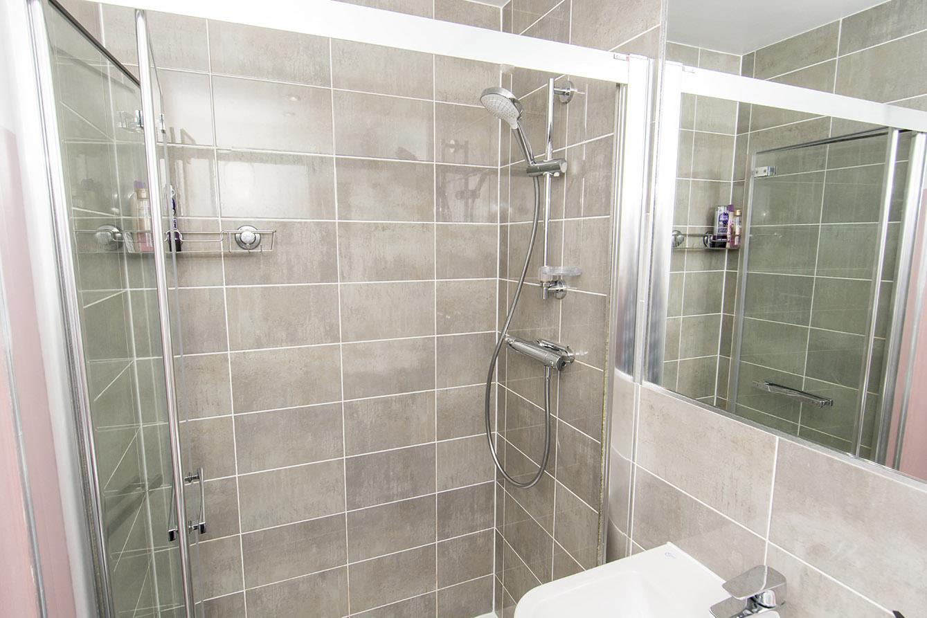 Master En-Suite - Opaque UPVC double-glazed window. Wc. Wash hand basin. Shower cubicle. Part tiled walls. Tiled floor. Extractor fan. Shaver point. Radiator.