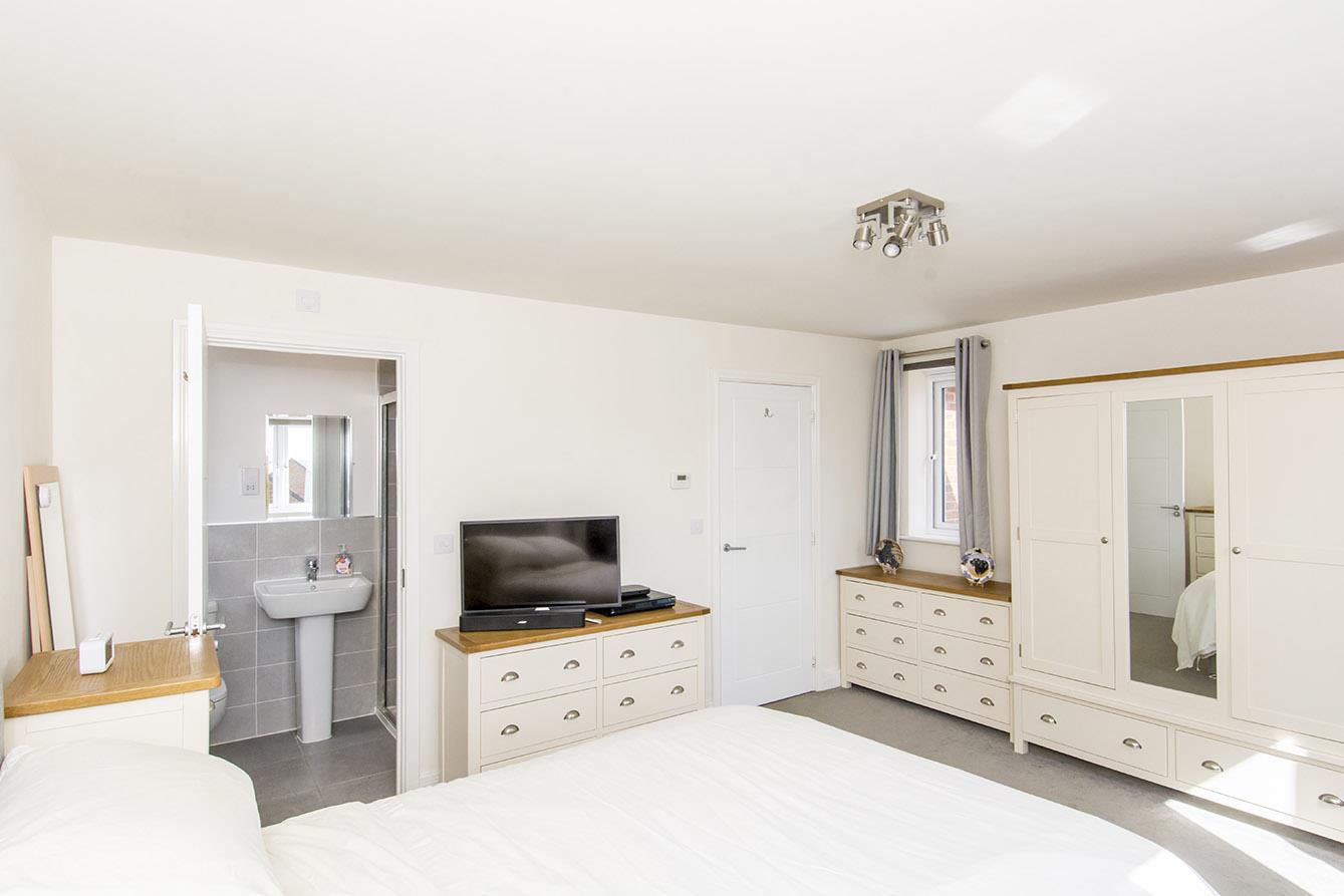 Master En-Suite - Opaque UPVC double-glazed window. Wc. Wash hand basin. Shower cubicle. Part tiled walls. Tiled floor. Extractor fan. Shaver point. Radiator.