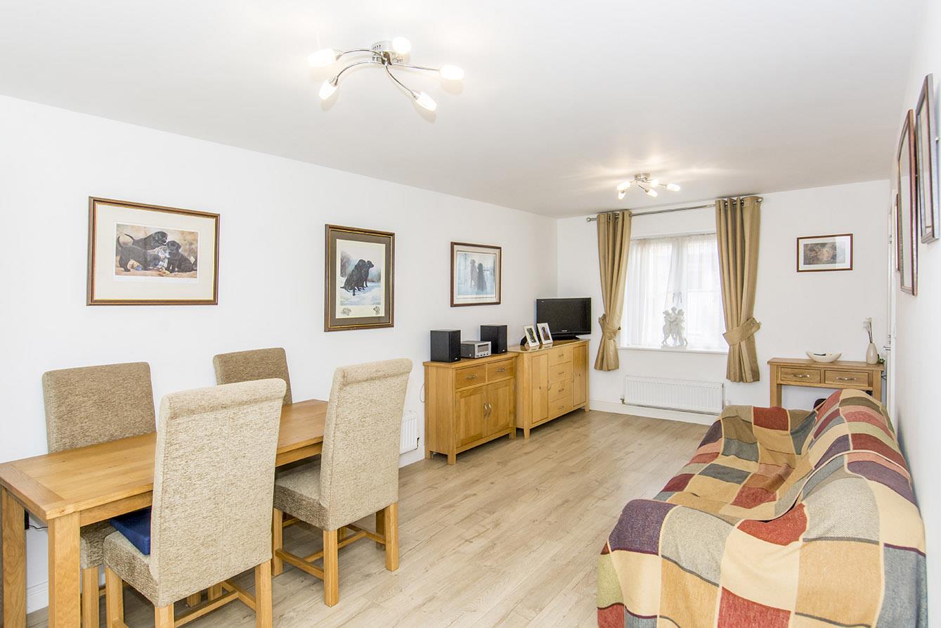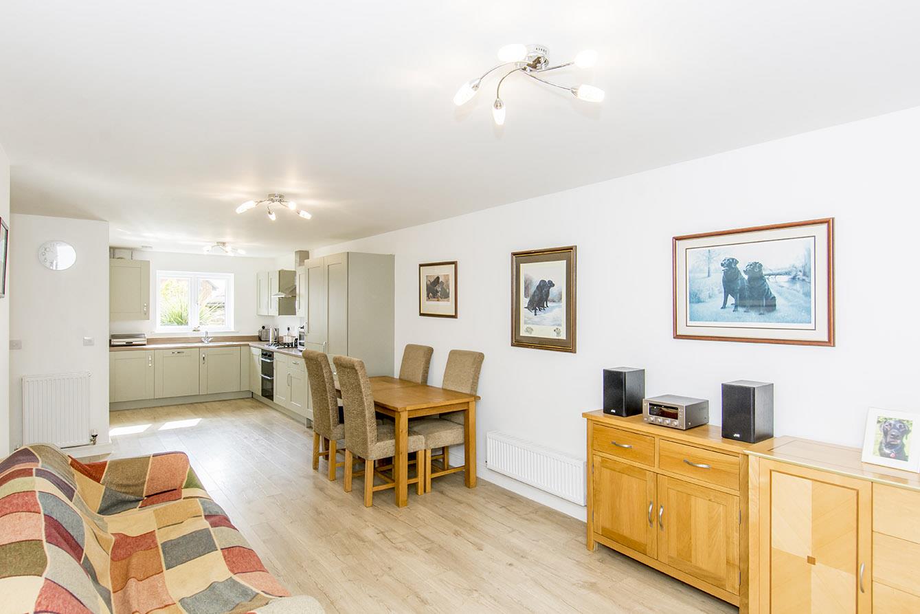 Living/Dining/Kitchen - 9.68m x 4.39m max / 2.57m min (31'9" x 14'5" max - UPVC double-glazed windows to front and rear. Fitted range of wall and floor mounted kitchen units with upgraded cupboard and drawer unit to the standard spec, work tops and sink inset. Integrated dishwasher. Integrated fridge/freezer. Electric oven. Gas hob with extractor hood over. Tiled splash backs. Laminate flooring. Understairs storage cupboard. Three radiators.
