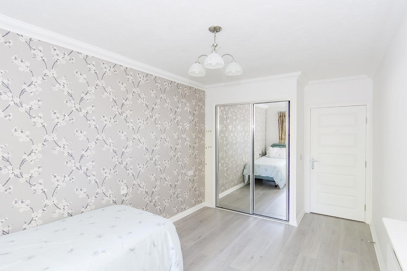 Bedroom One - 4.93m x 2.79m (16'2" x 9'2") - UPVC double-glazed window overlooking communal gardens. Fitted mirrored wardrobes. Coving to ceiling. Telephone point. Laminate flooring. Electric radiator.