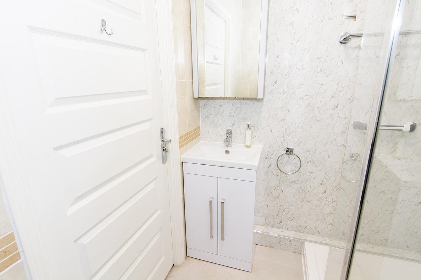 Shower Room - 2.01m max x 1.63m max (6'7" max x 5'4" max) - WC. Wash hand basin over storage unit. Walk in shower cubicle. Extractor fan. Tiled splash backs.
