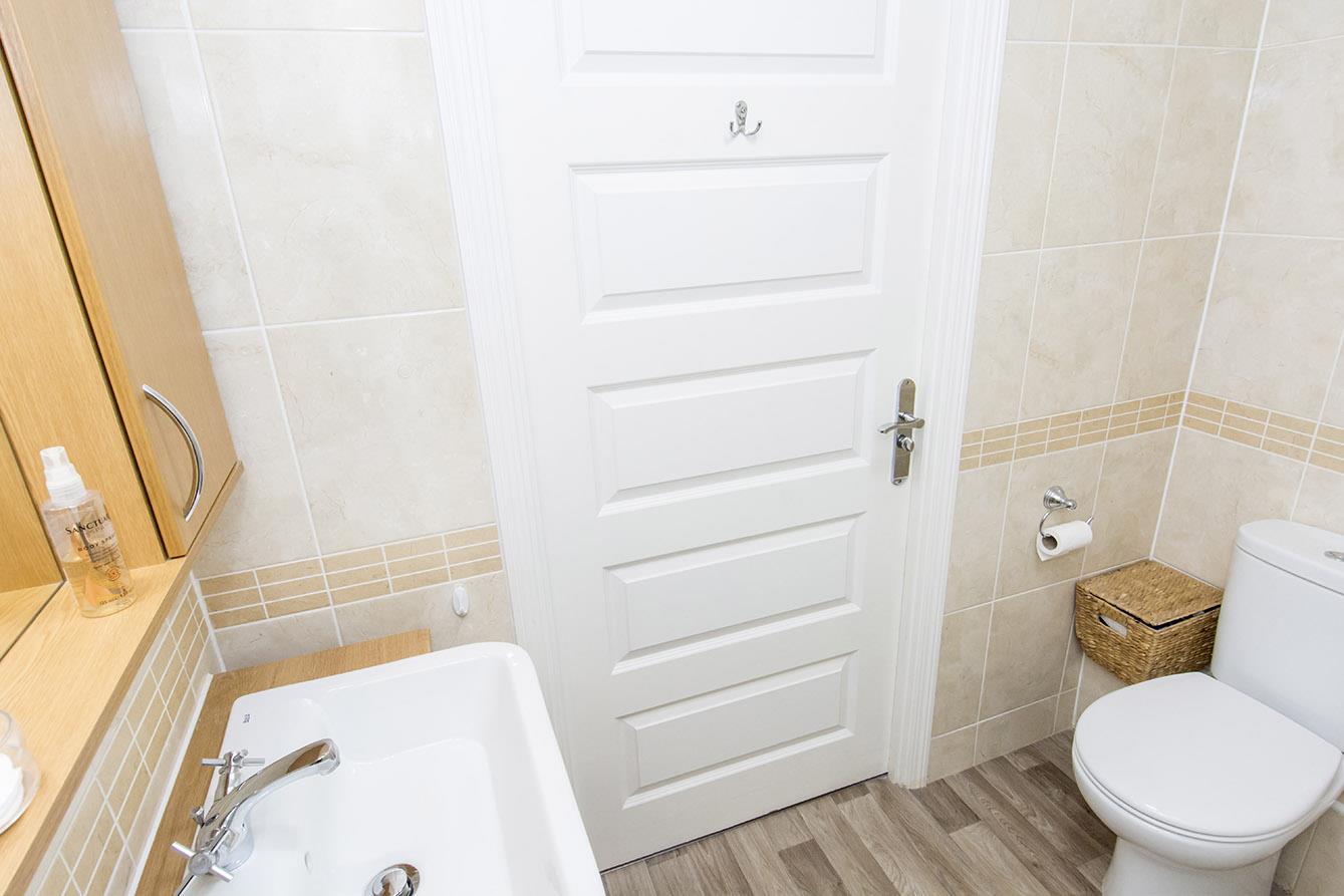Shower Room - 2.06m x 1.65m (6'9" x 5'5") - WC. Wash hand basin over storage unit. Shower cubicle. Extractor fan. Heated towel rail. Tiled walls. Vanity unit.