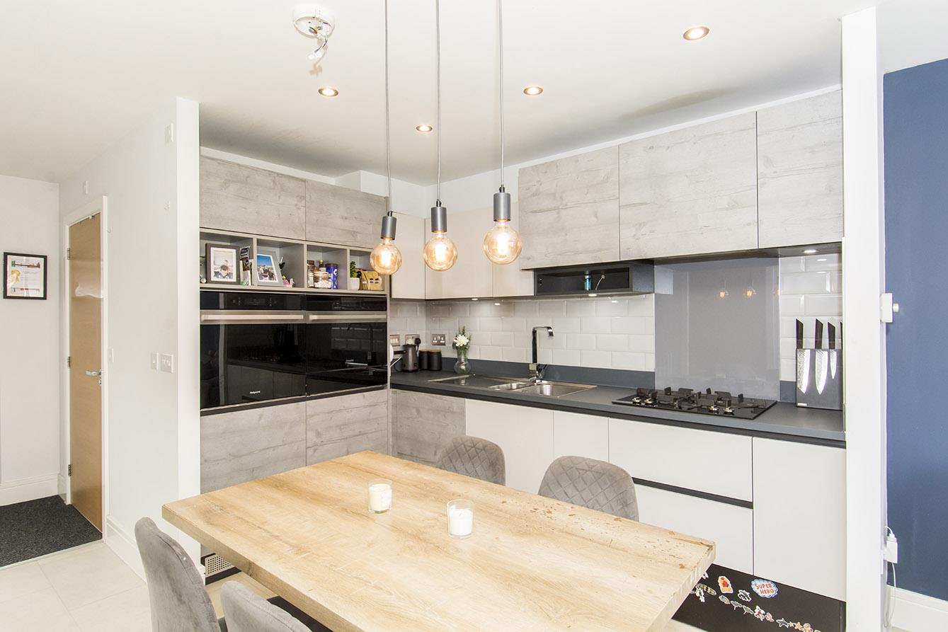 Kitchen/Dining Area - 3.07m max into recess x 2.74m plus fridge/freezer - Fitted with a stylish range of wall and floor mounted units. Stainless steel one and a half bowl sink. Electric oven. Built in microwave oven. Integrated dishwasher. Gas hob. Recessed space for fridge/freezer. Radiator. Opening through to living area.