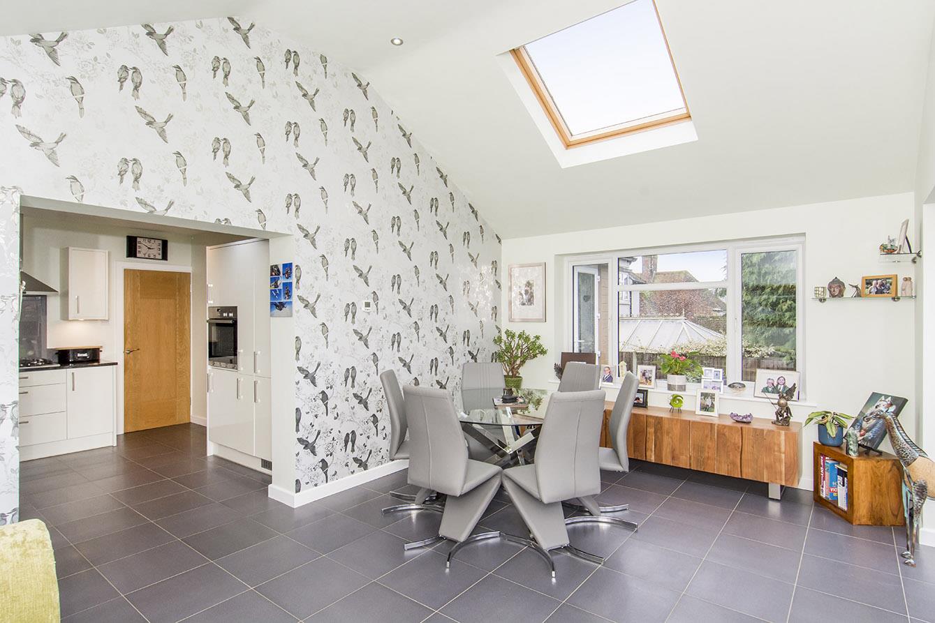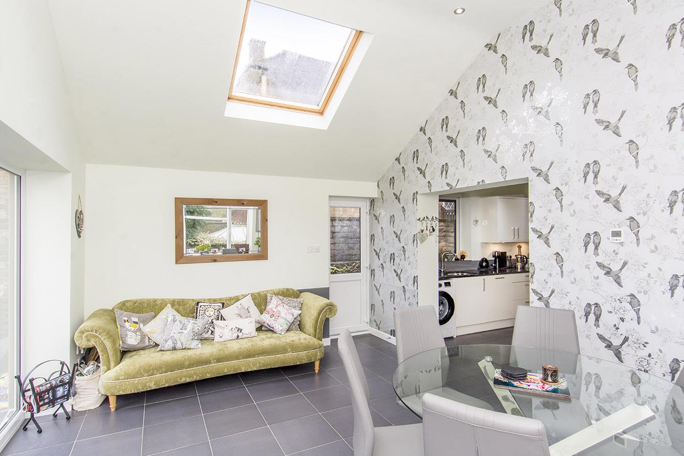 Family Room - 5.23m x 3.58m (17'2" x 11'9") - Impressive pitched roof extension with two double glazed velux windows and inset ceiling down lighters. Ceramic tiled flooring with underfloor heating. Double glazed door to the side pedestrian access. Double glazed French doors opening out to the rear garden. Television point.