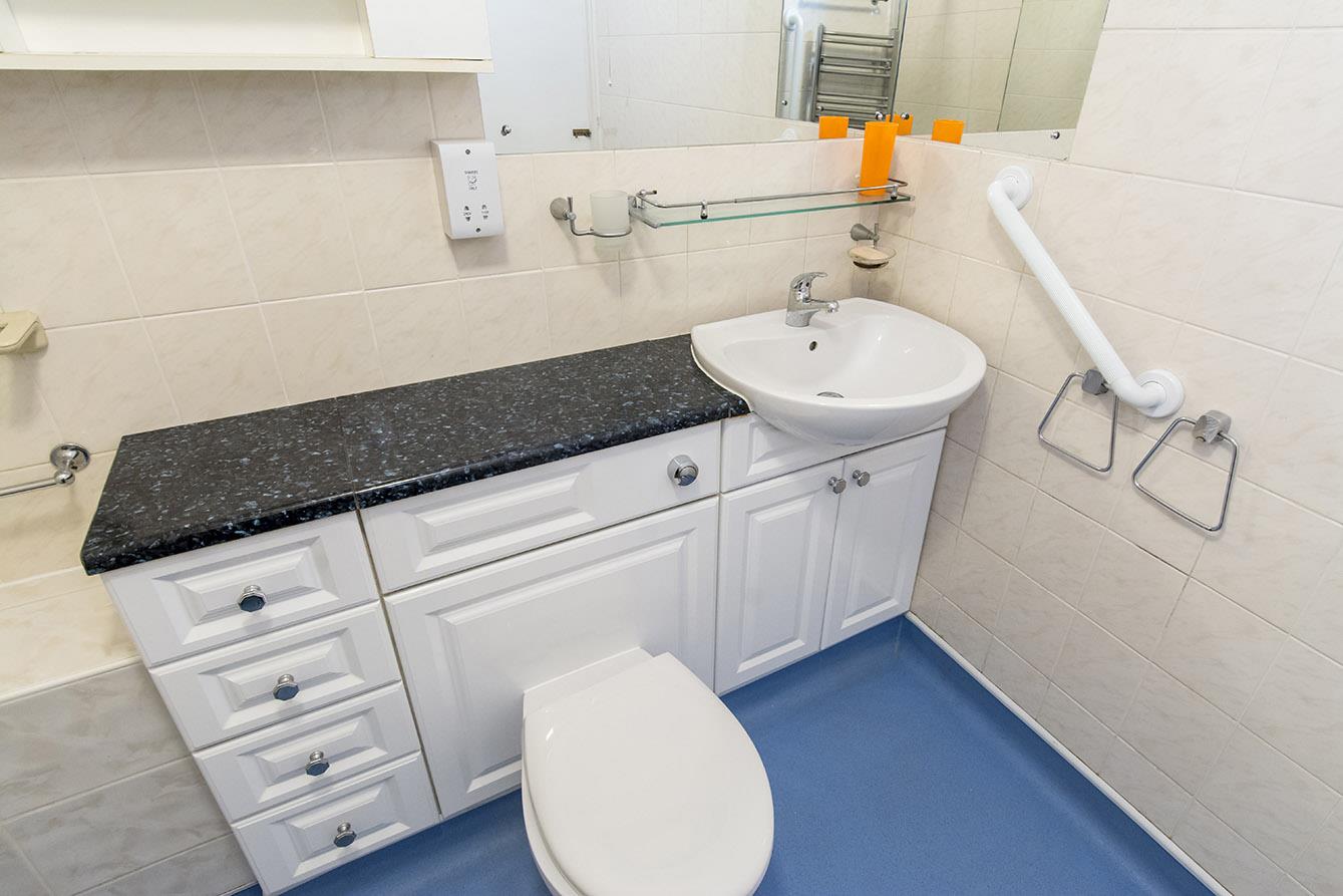 Wet Room - 2.24m x 1.73m (7'4 x 5'8) - Comprising: Walk-in shower with non-slip wet room flooring, low level WC and wash hand basin within a fitted vanity unit with cupboard storage. Extractor. Wall tiling throughout. Chrome heated towel rail.