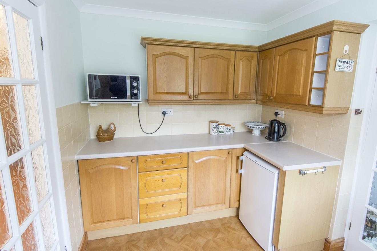 Kitchen - 3.28m x 2.24m (10'9 x 7'4) - Having a selection of fitted base and wall units with a laminate worktop over and a 1 1/2 bowl stainless steel sink with drainer. There is a freestanding electric top cooker with extractor over and space for an under counter fridge/freezer. UPVC double glazed window to rear aspect. Door through to: Utility. Vinyl flooring.