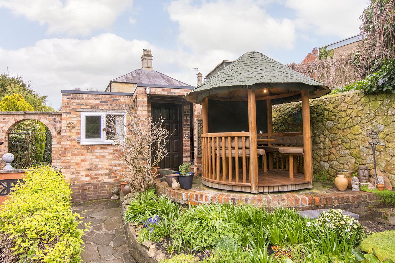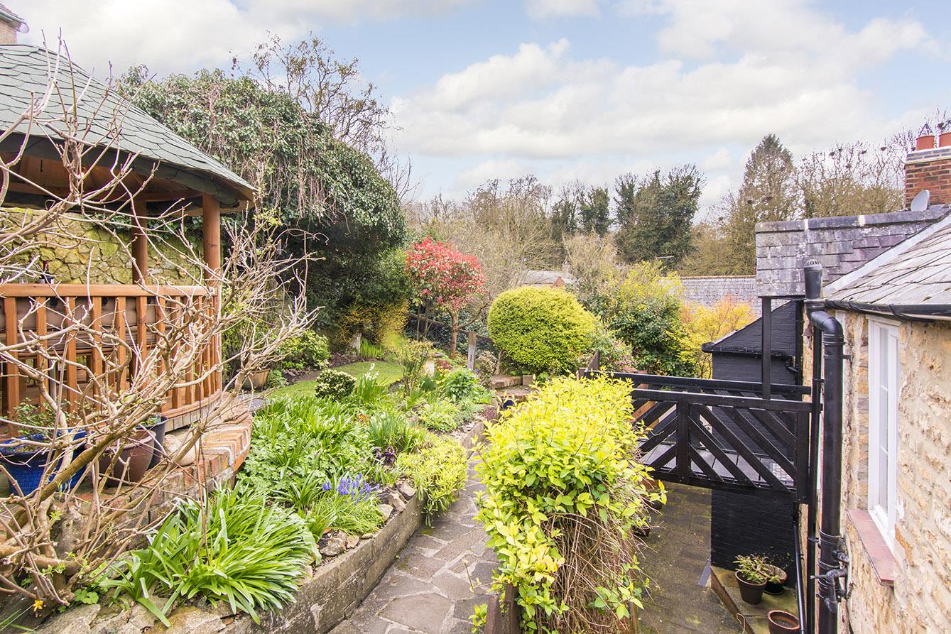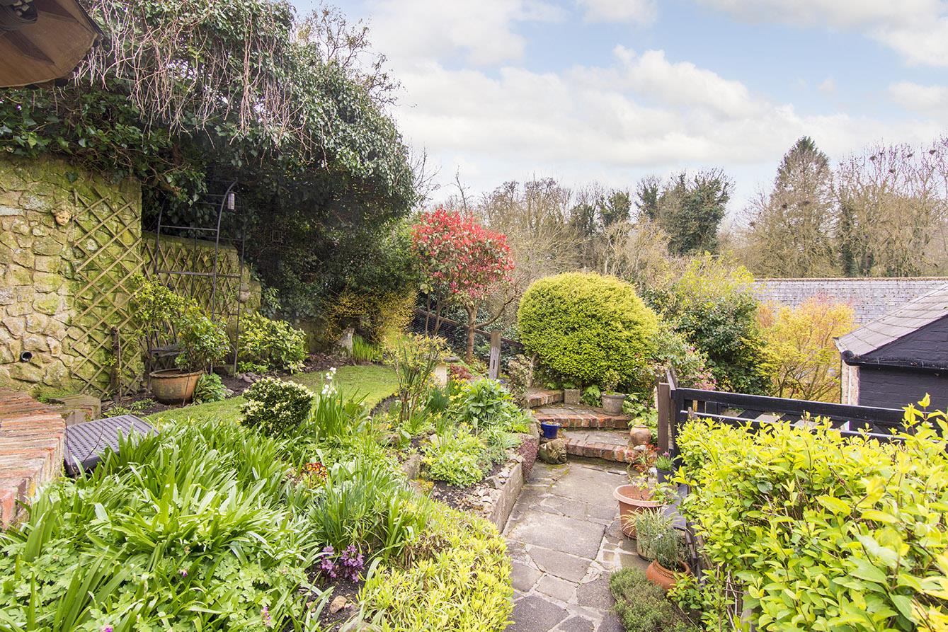 Rear Garden - Sunken pathway leading along the rear of the property from the entrance passageway with a fantastic timber bridge over bridging the top tier of the garden to the top floor kitchen. Steps leading up to the main garden which is mainly laid to lawn with a variety of plant beds and borders and a Julian Christian timber garden room.