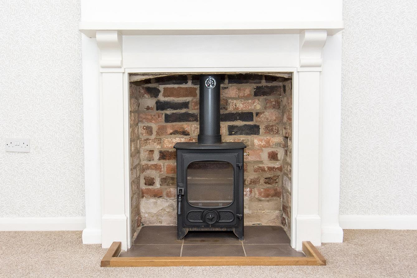 Lounge - 3.66m x 3.40m (12'00" x 11'2") - This spacious lounge has a fireplace housing a woodburning stove set on a tiled hearth. There is a window to the front aspect and an electric storage heater.