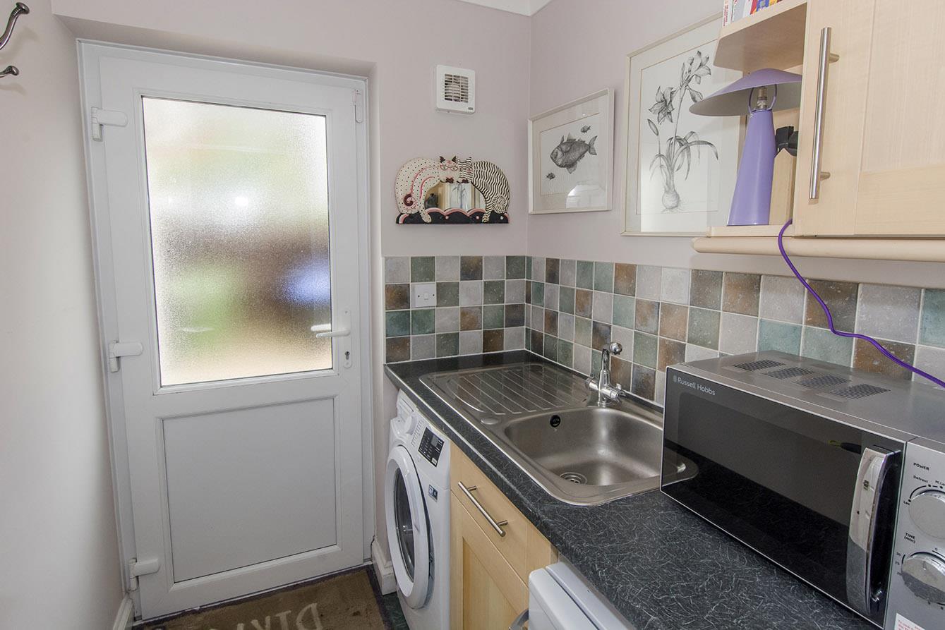 Utility Room - 1.73m x 1.55m (5'8" x 5'1") - This useful utility room has a stainless steel sink unit, plumbing and space for a washing machine & fridge freezer. There is a glazed back door and ceramic floor tiles.
