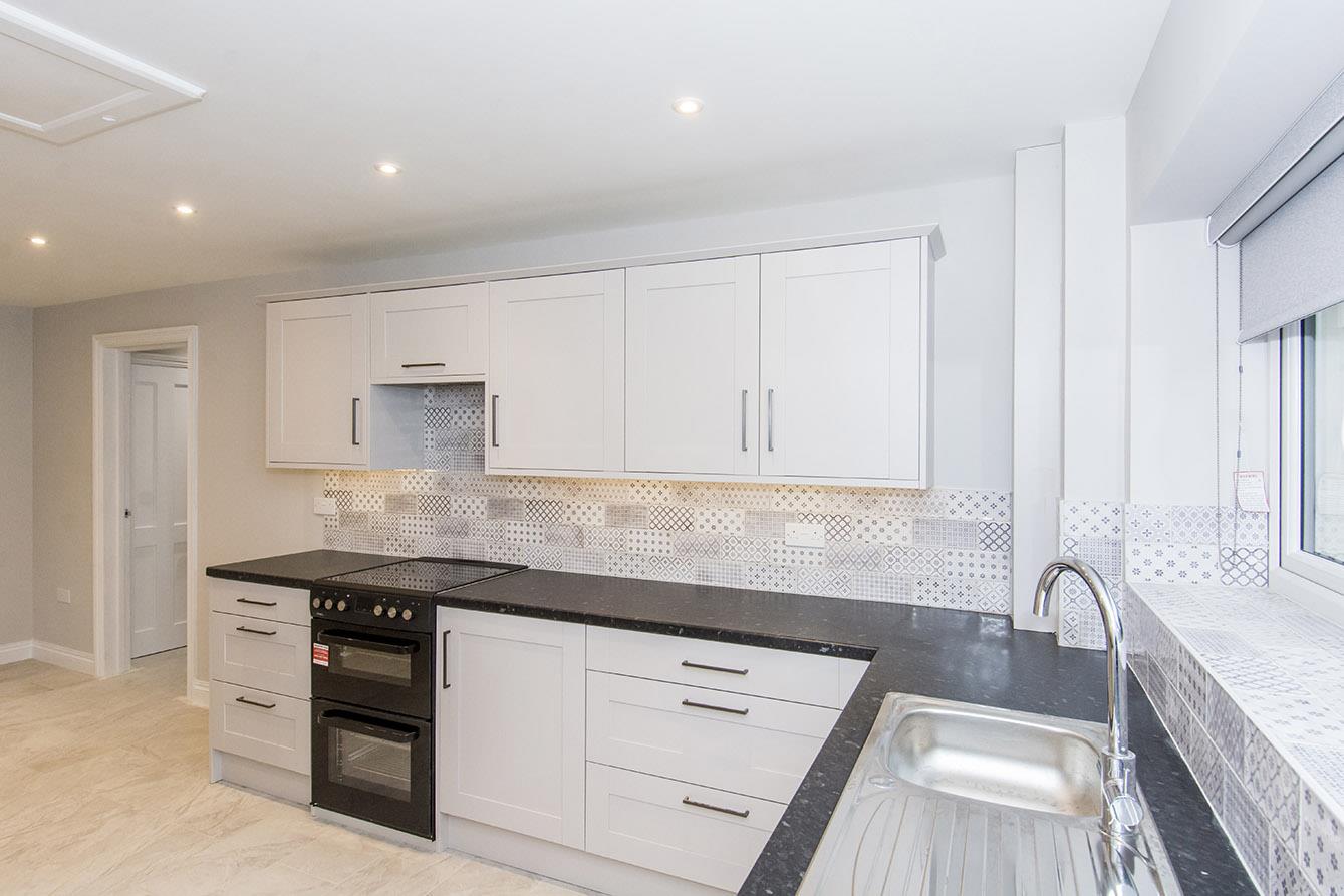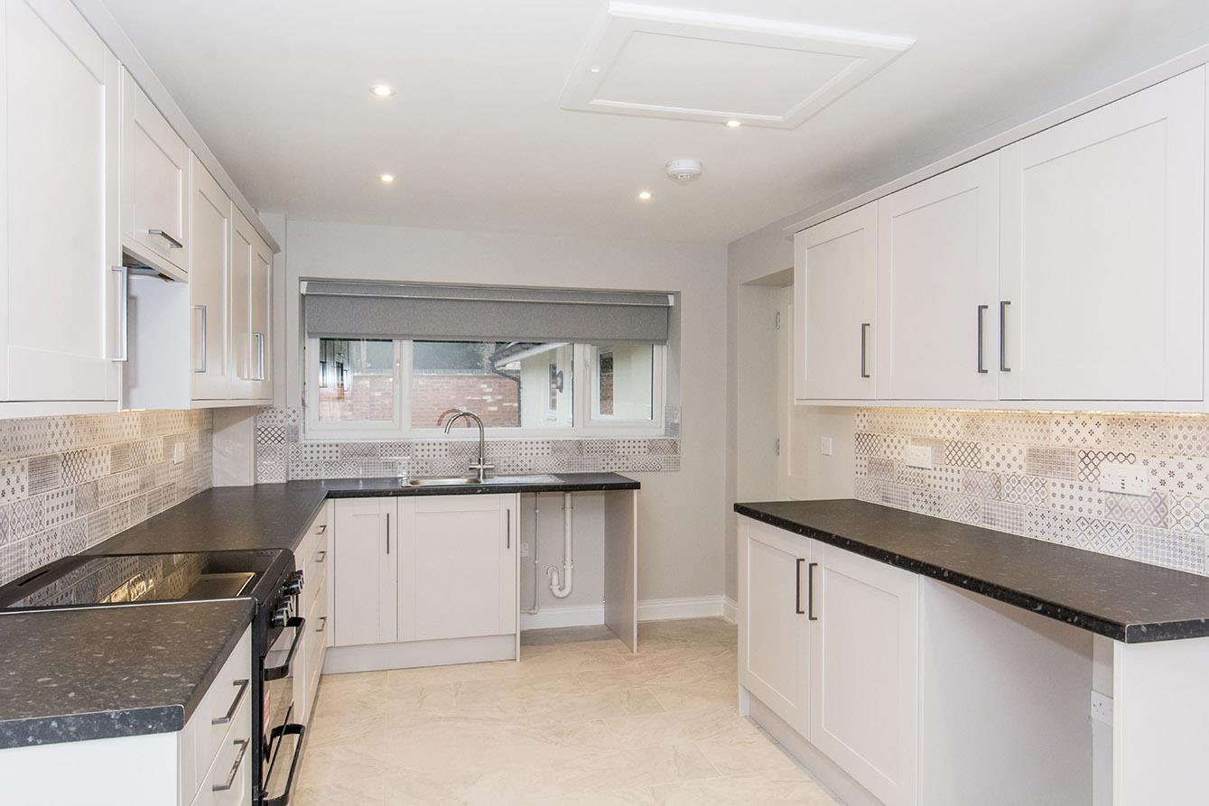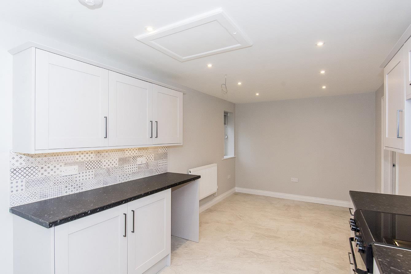 Kitchen/Breakfast Room - 6.17m x 2.92m (20'3" x 9'7") - Double-glazed window to front and side elevations. Laminated work surfaces with complimentary tiled splash backs. Fitted base and wall units. Fitted electric free standing cooker with extractor fan over. Stainless steel single sink and drainer. Space and plumbing for automatic dishwasher. Space and point for undercounter fridge. Tiled flooring. Ceiling inset down lighters. Radiator. Door to utility room.