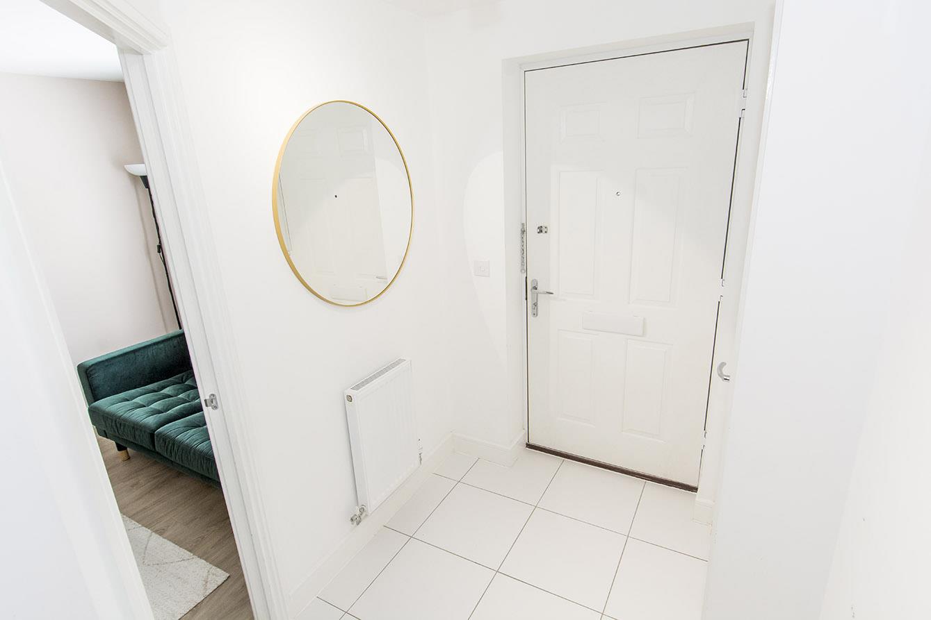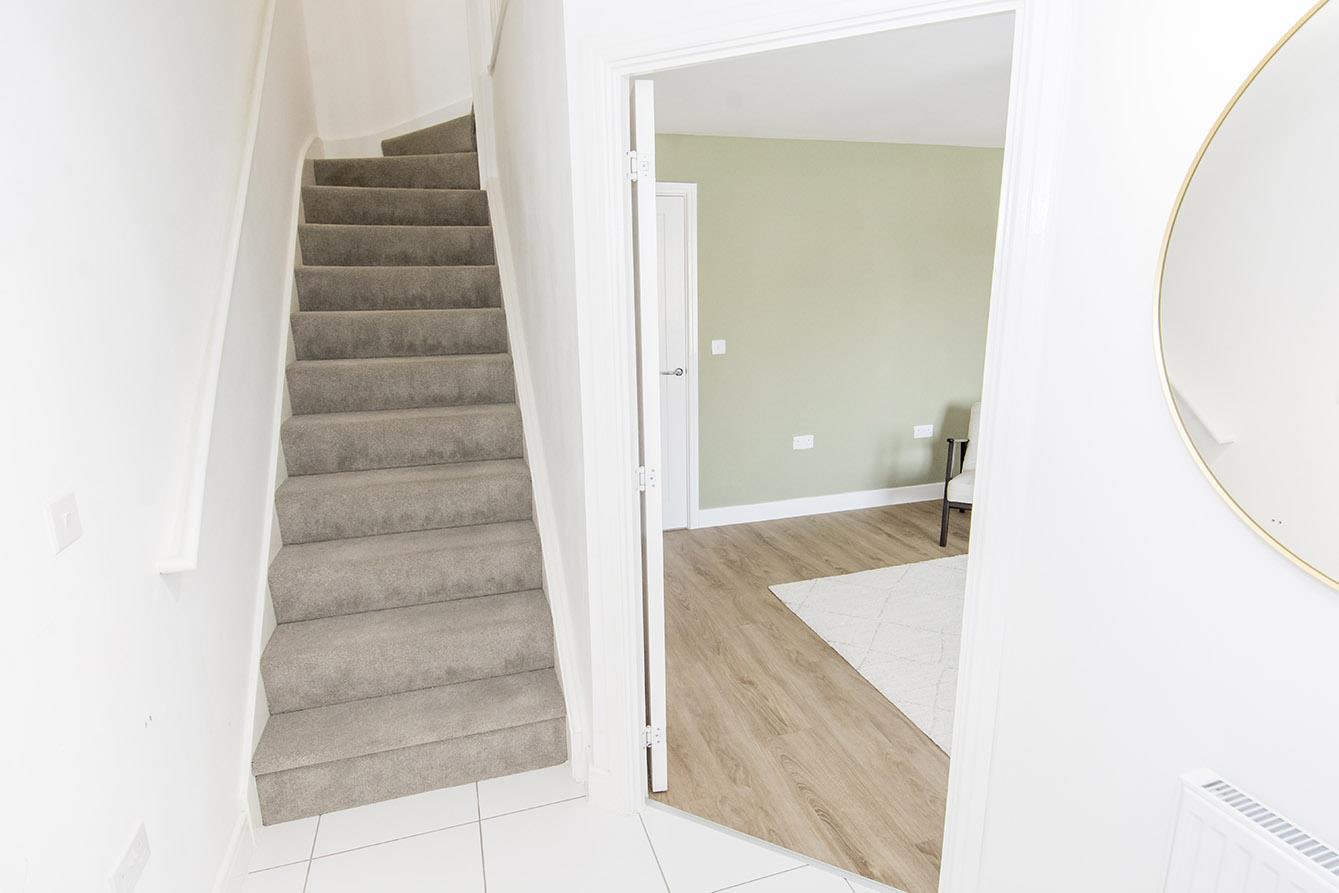 Entrance Hall - Accessed by composite front door. Radiator. Fitted wardrobe. Ceramic tiled flooring. Stairs rise into the fist floor. Door to the lounge.