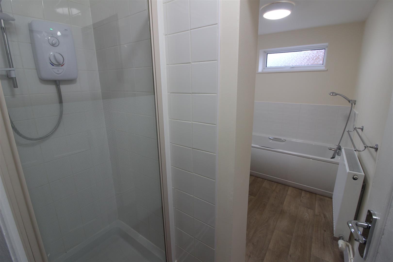 Bathroom - White suite comprising shower cubicle with electric shower fitment, panelled bath, pedestal wash hand basin and low level WC. Complementary tiling. Opaque upvc double glazed windows to the side and rear elevations. Extractor fan. Radiator.