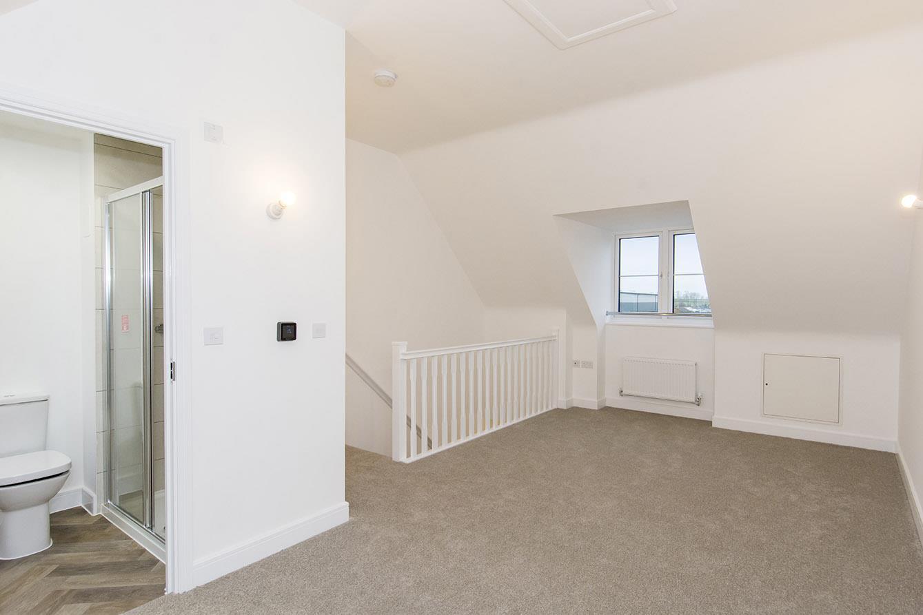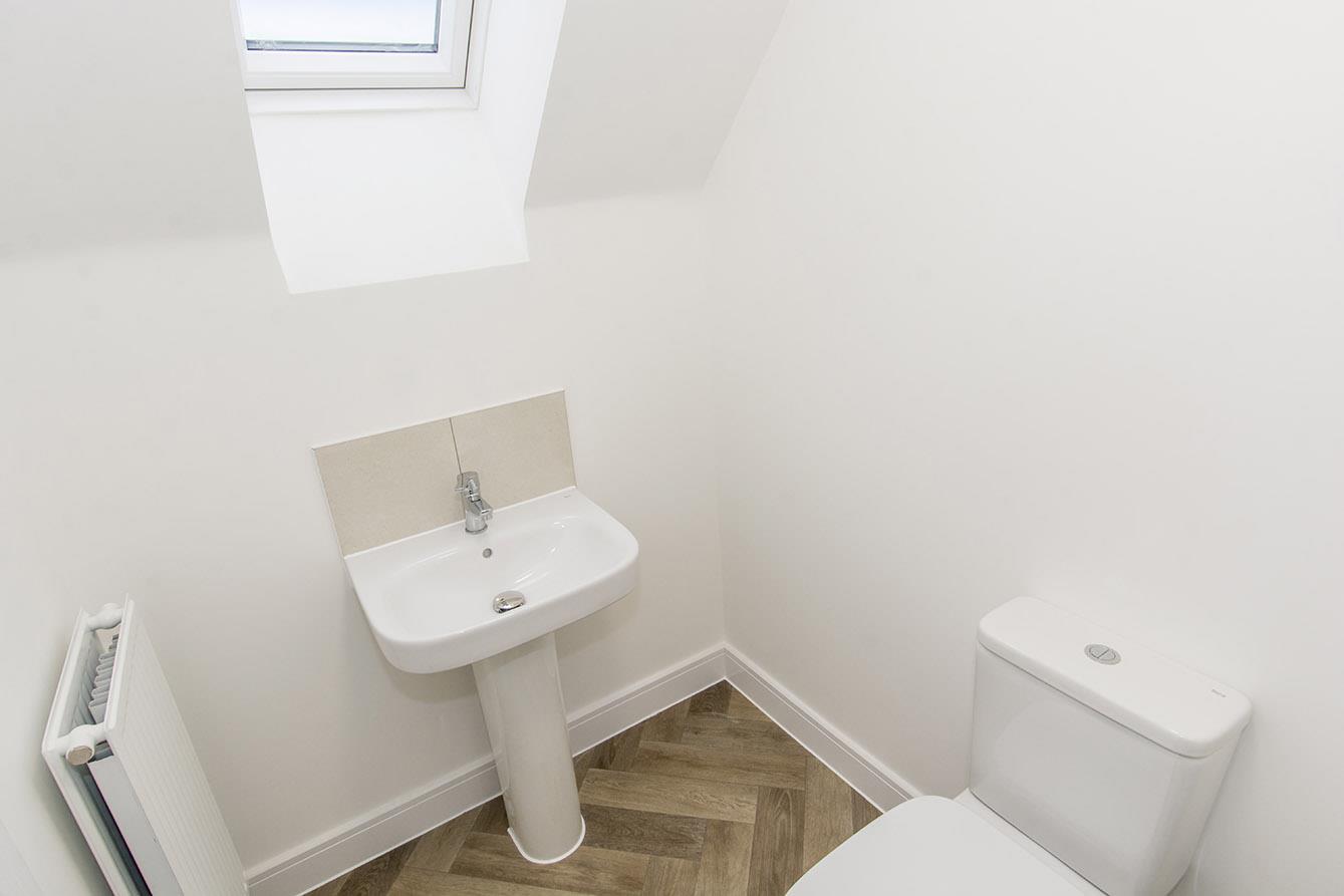 En-Suite Shower Room - Double shower cubicle and mains shower fitment. Pedestal wash hand basin. Low level wc. Complimentary tiling. Karndean flooring. Double-glazed Velux window. Radiator. Extractor fan.