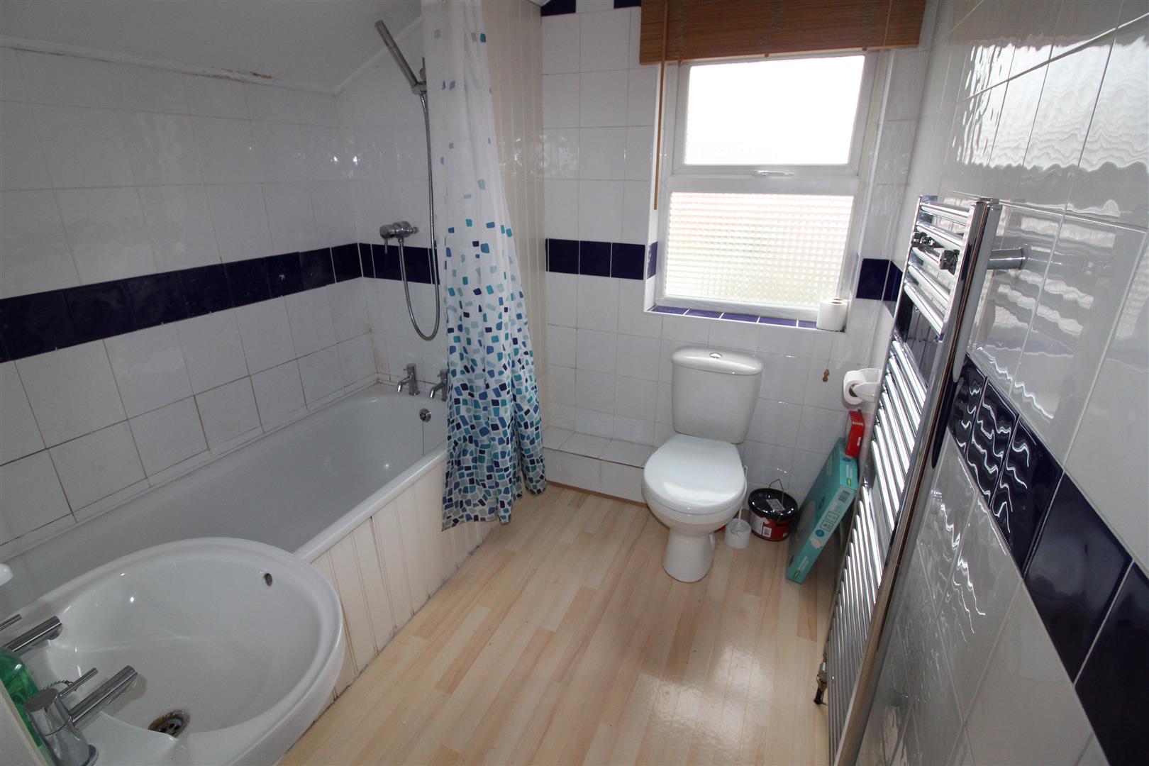Bathroom - Panelled bath with mains shower fitment over. Pedestal wash hand basin. Low level WC. Heated towel rail. Opaque double glazed window. Complementary tiling. Vinyl flooring. Opaque double glazed window.