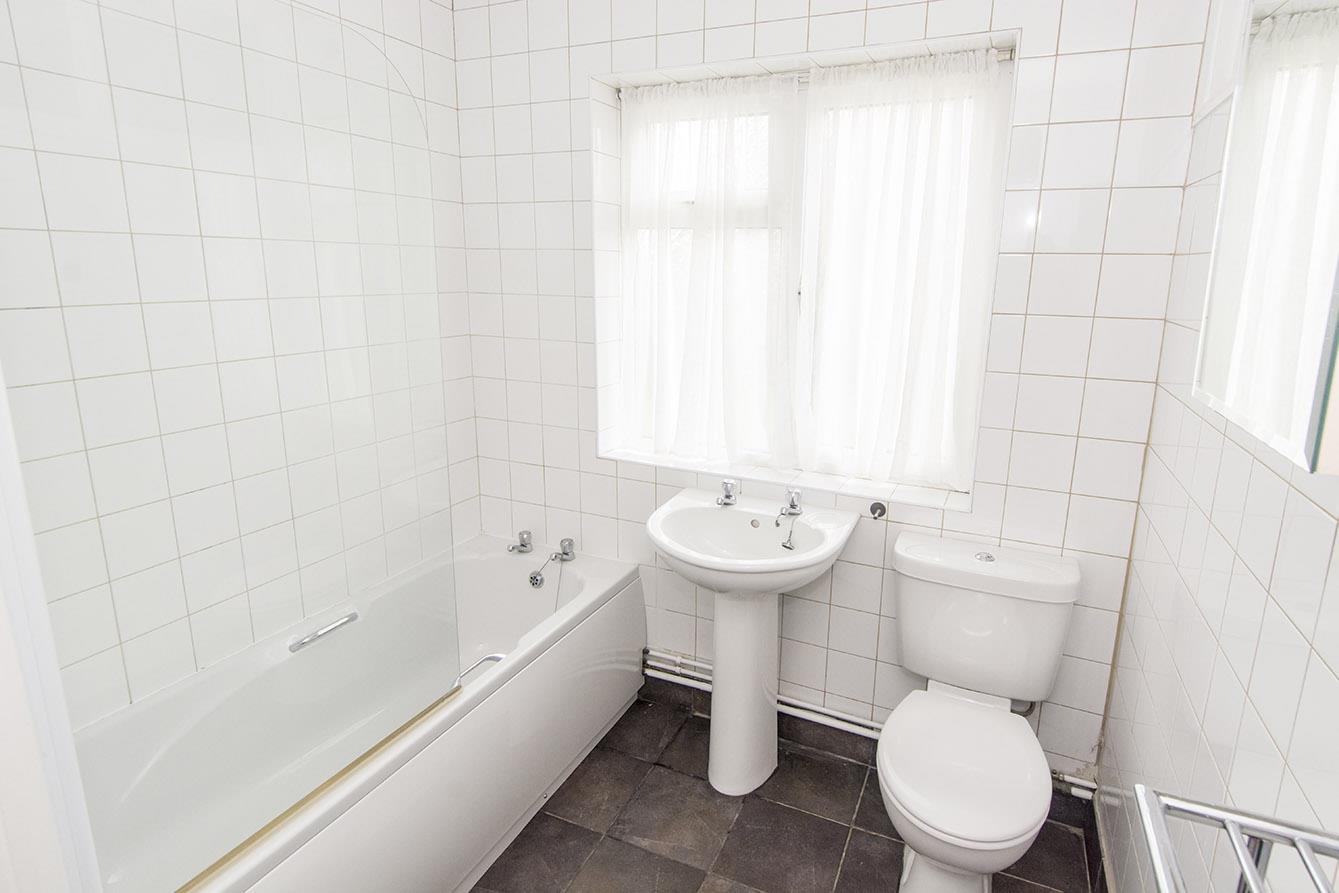 Bathroom - Panelled bath with electric shower fitment over. Pedestal wash hand basin. Low level WC. Complementary tiling. Built in linen cupboard. Radiator. Electric shaver point. Opaque double glazed window.