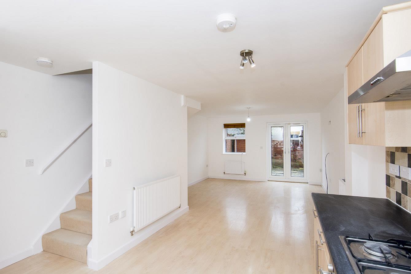 Living Room Area - 4.75m x 3.81m max (15'7" x 12'6" max) - Wood laminate flooring. Two radiators. Double-glazed French doors opening out to the rear garden. Double-glazed window to the rear elevation. Television point. Telephone point. Understairs storage cupboard.