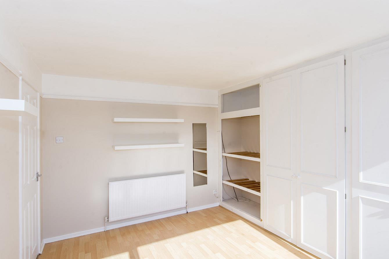 Bedroom Two - 3.66m x 3.45m (12'0" x 11'4" ) - Double-glazed window to the front elevation. Fitted wardrobes spanning one wall. Wood laminate flooring. Radiator. Picture rail. Fitted floating shelves.