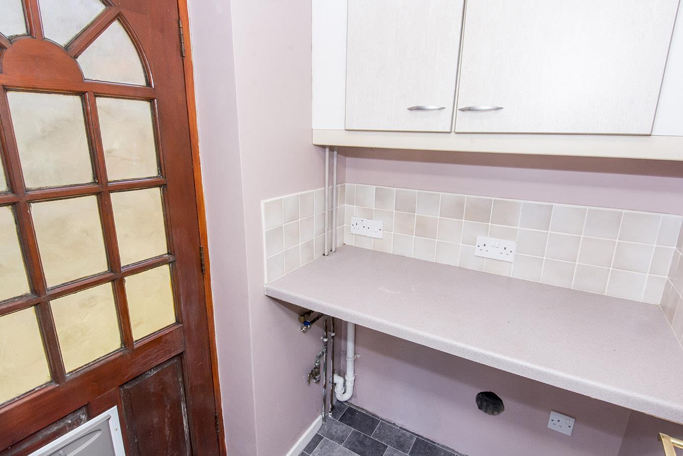 Utility Room - 1.47m x 1.24m (4'10" x 4'1") - Multi pane door leading outside. Fitted wall units. Space and plumbing for automatic washing machine. Laminated work surfaces with complimentary tiled splash backs.