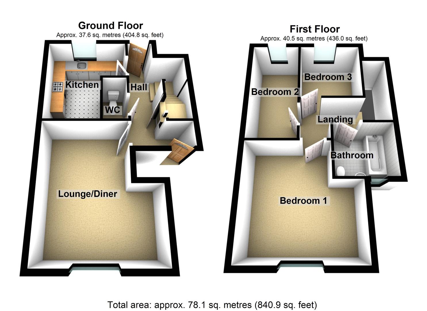 Family Bathroom - Fitted with complimentary tiled walls and vinyl flooring. Low level WC, hand wash basin and bath with mains shower fitment over. UPVC double glazed frosted window to the front. Extractor.