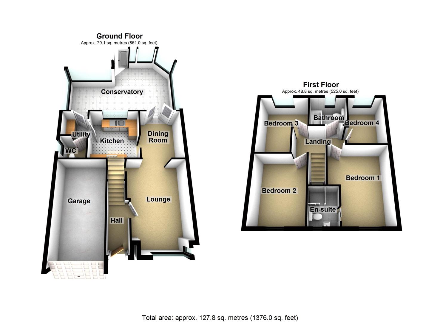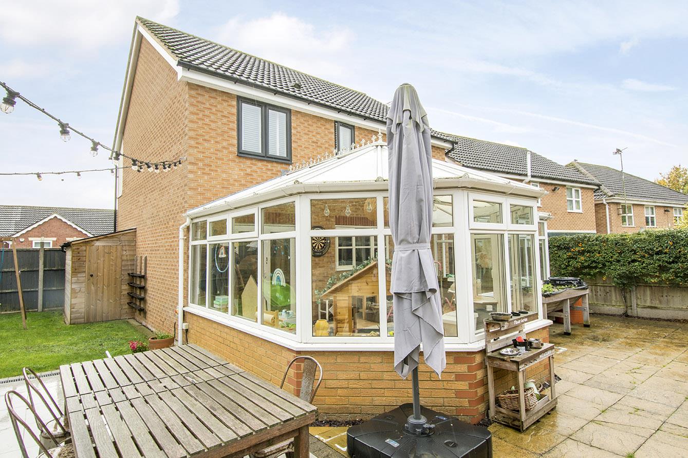 The gas centrally heated and double glazed accommodation comprises: Entrance hall, downstairs WC, lounge, dining room, fitted kitchen, utllity, 22' x 15' modern conservatory, landing, four bedrooms, en-suite shower room and family bathroom.
