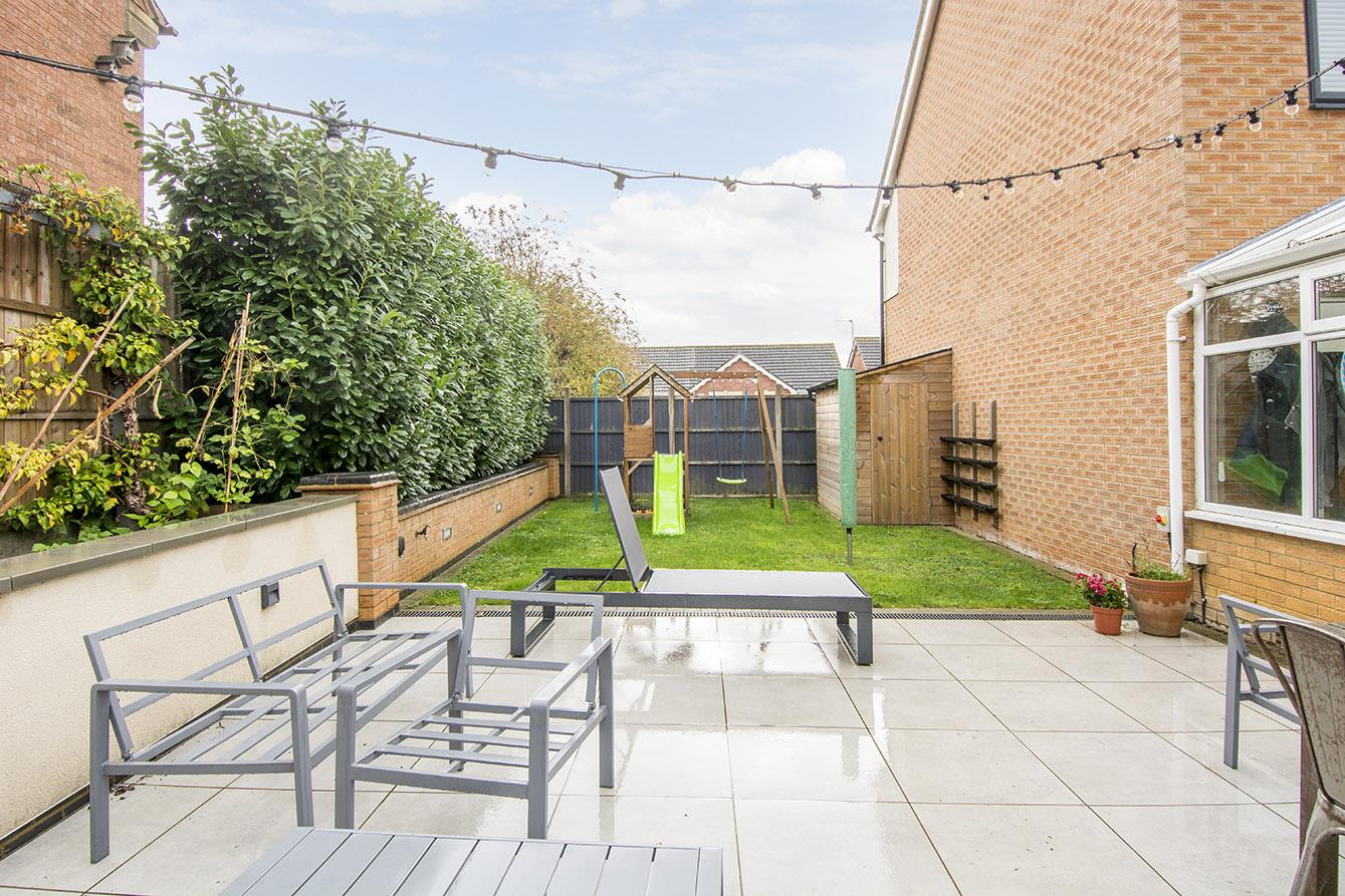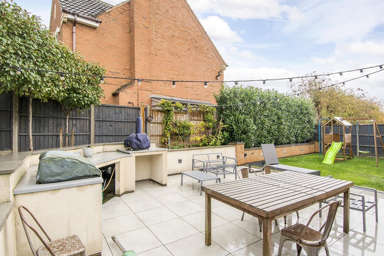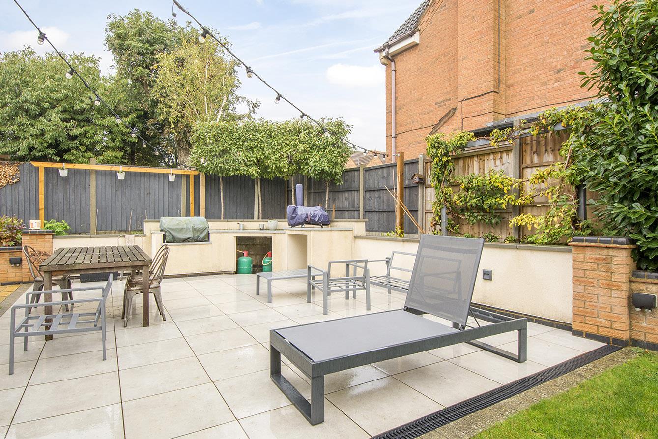 Outside - Rear & Side - The rear and side gardens are private being enclosed by timber lap fencing. The side garden is laid mainly to lawn. There is a porcelain tiled seating area with brick built work station. To the rear of the house it is mainly paved with raised beds and brick retaining wall.