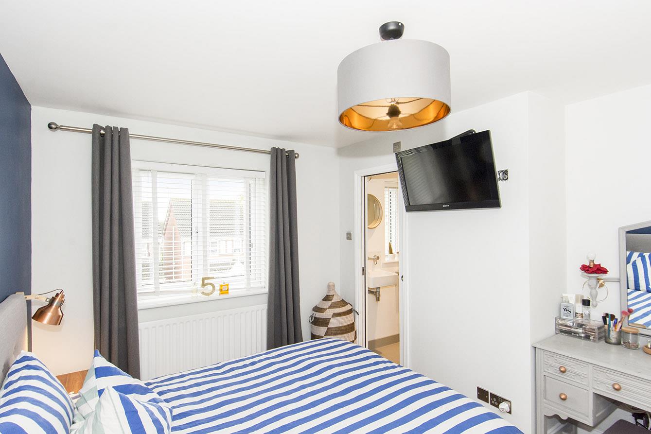 Outside Front - To the front of the property is tarmacked hardstanding for two cars, outside lighting and EV charging point. There is also a wide lawned area and gated side pedestrian access to the rear.