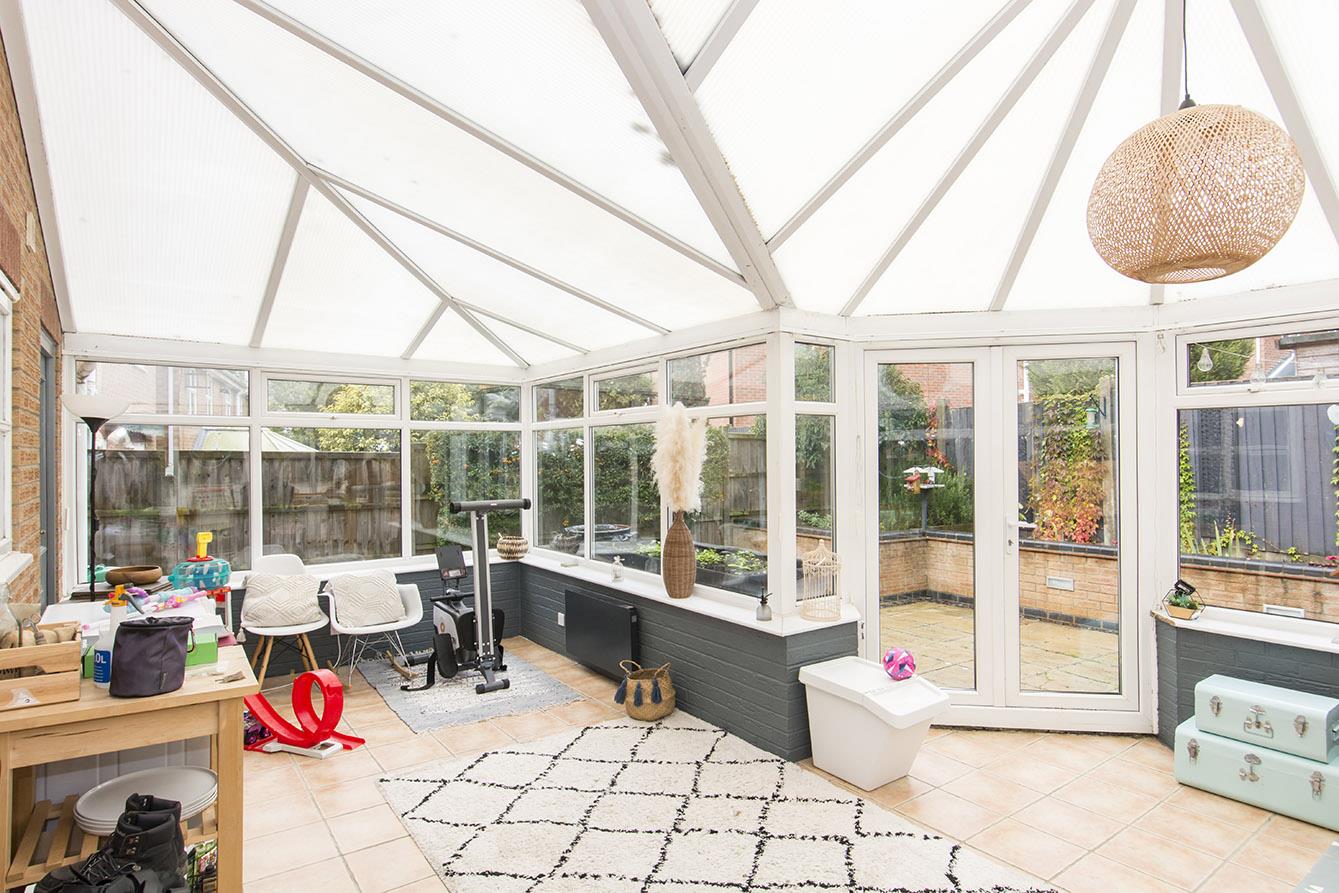 Conservatory - 6.71m max x 4.65m max (22'0" max x 15'3" max) - Upvc double glazed and pitched ceiling conservatory with French doors opening out to the rear garden. Tiled flooring. Door to utility room.