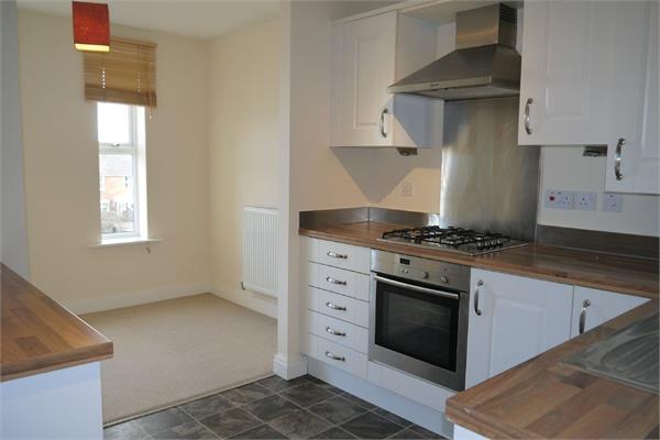 Kitchen - 2.77 x 2.62 - 14' 6" max into door recess, narrowing to 9' 1" x 8' 7" (4.42m/2.77m x 2.62m) Fitted with a range of wall and floor mounted kitchen units, roll-edge worktops, stainless steel one and a half bowl sink with mixer tap and drainer, electric oven, gas hob with extractor hood over, integrated washing machine, space for fridge and freezer, radiator.