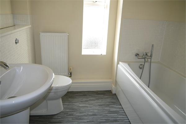 Bathroom - 2.21 x 1.93 - 7' 3" x 6' 4" (2.21m x 1.93m) Opaque UPVC double glazed window, three piece white suite comprising WC, wash hand basin and panelled bath with shower mixer tap over, tiled splash-backs, extractor fan, radiator.