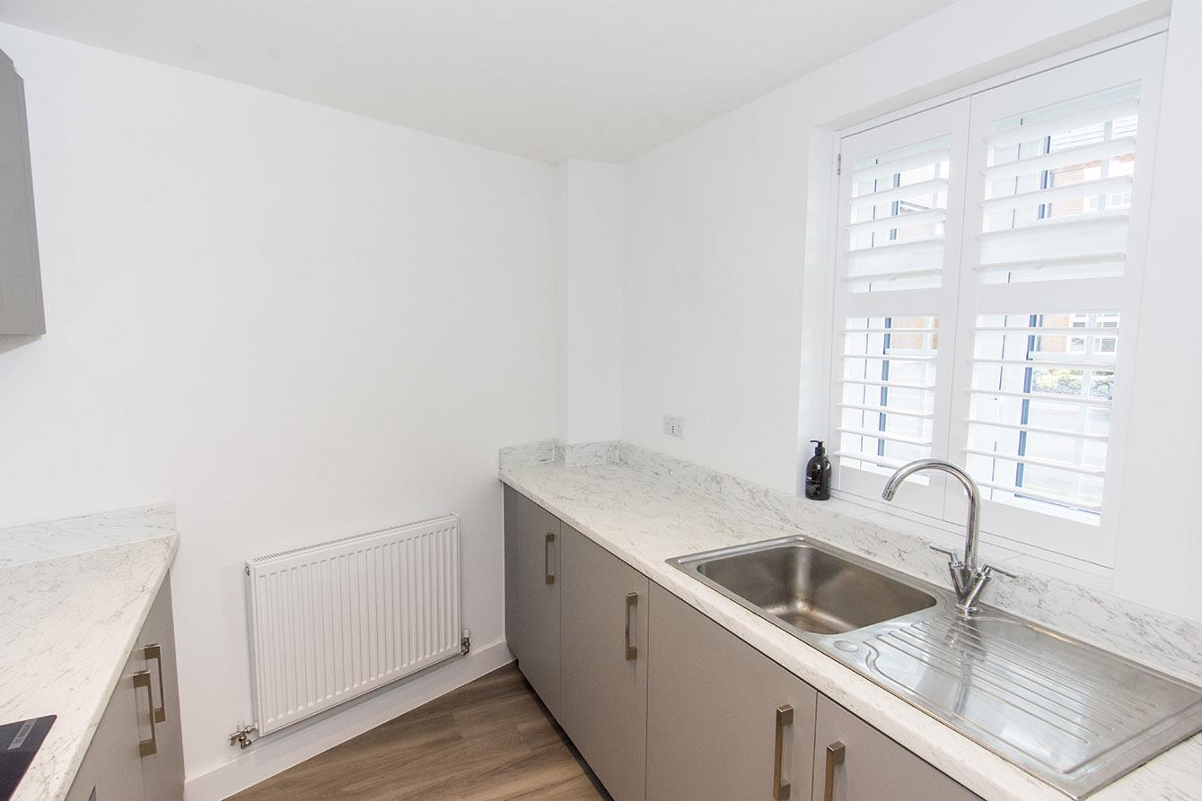 Kitchen - 2.87m x 2.36m (9'5" x 7'9") - Laminated work surfaces with matching splash backs. Fitted base and wall units. Fitted oven and four ring electric hob with extractor fan over. Fitted microwave. Automatic washing machine. Fridge and freezer. Stainless steel single sink and drainer. Wood effect laminate flooring. Double-glazed shuttered window to the front elevation.