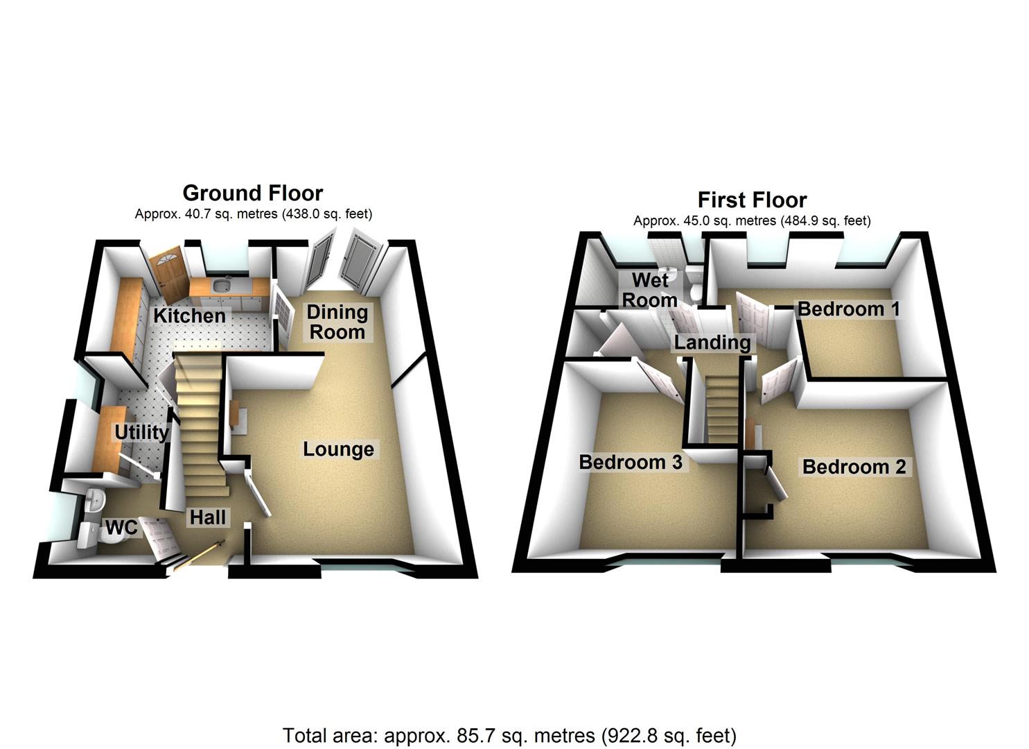 The property is double glazed and benefits from thermostatically controlled electric radiators. The accommodation comprises: Entrance hall, downstairs WC, utility room, kitchen, dining area and separate lounge, three double bedrooms and wet room.
