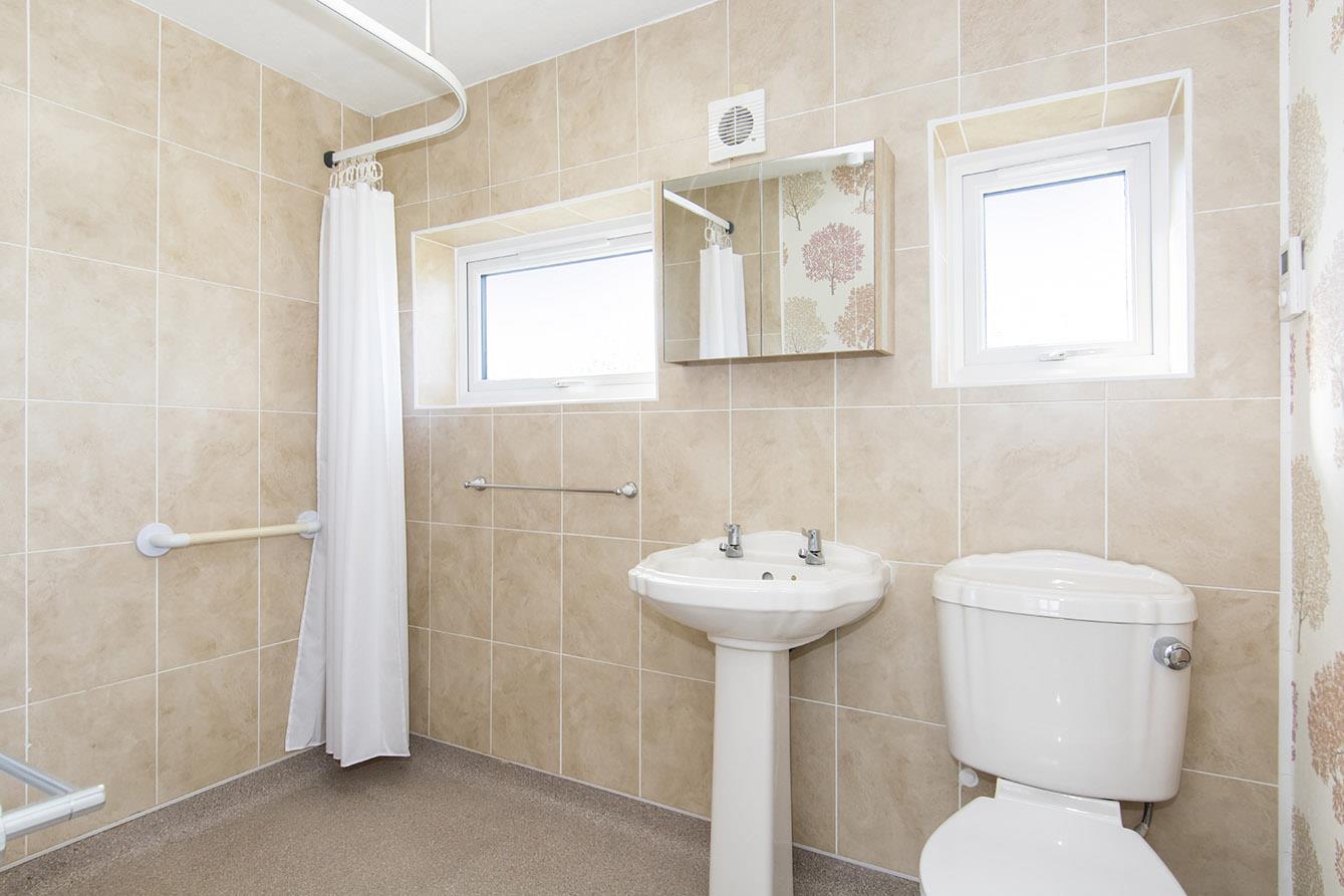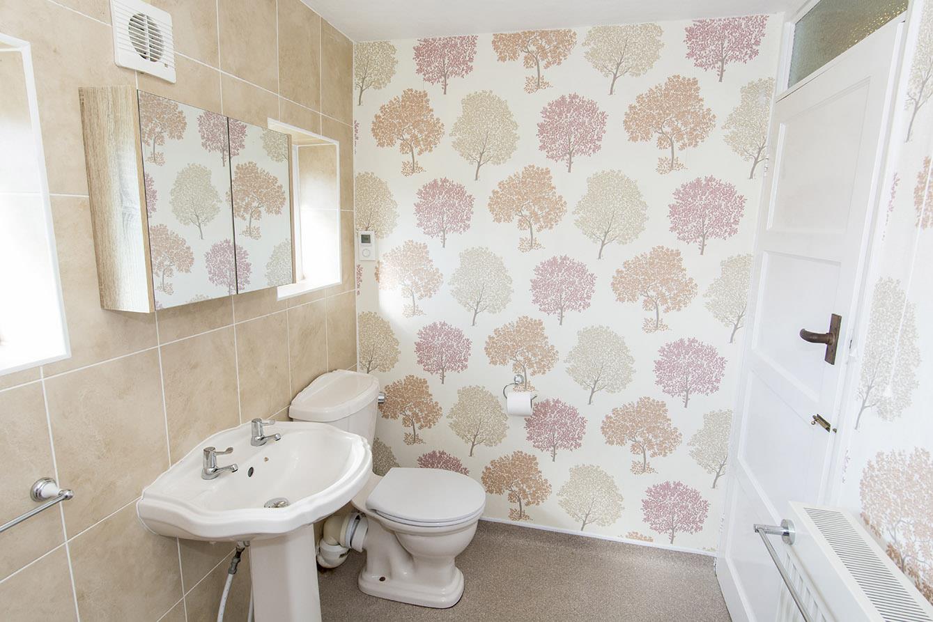 Wet Room - Open shower area with electric shower fitment. Pedestal wash hand basin. Low level WC. Complementary tiling. Radiator. Two opaque double glazed windows.